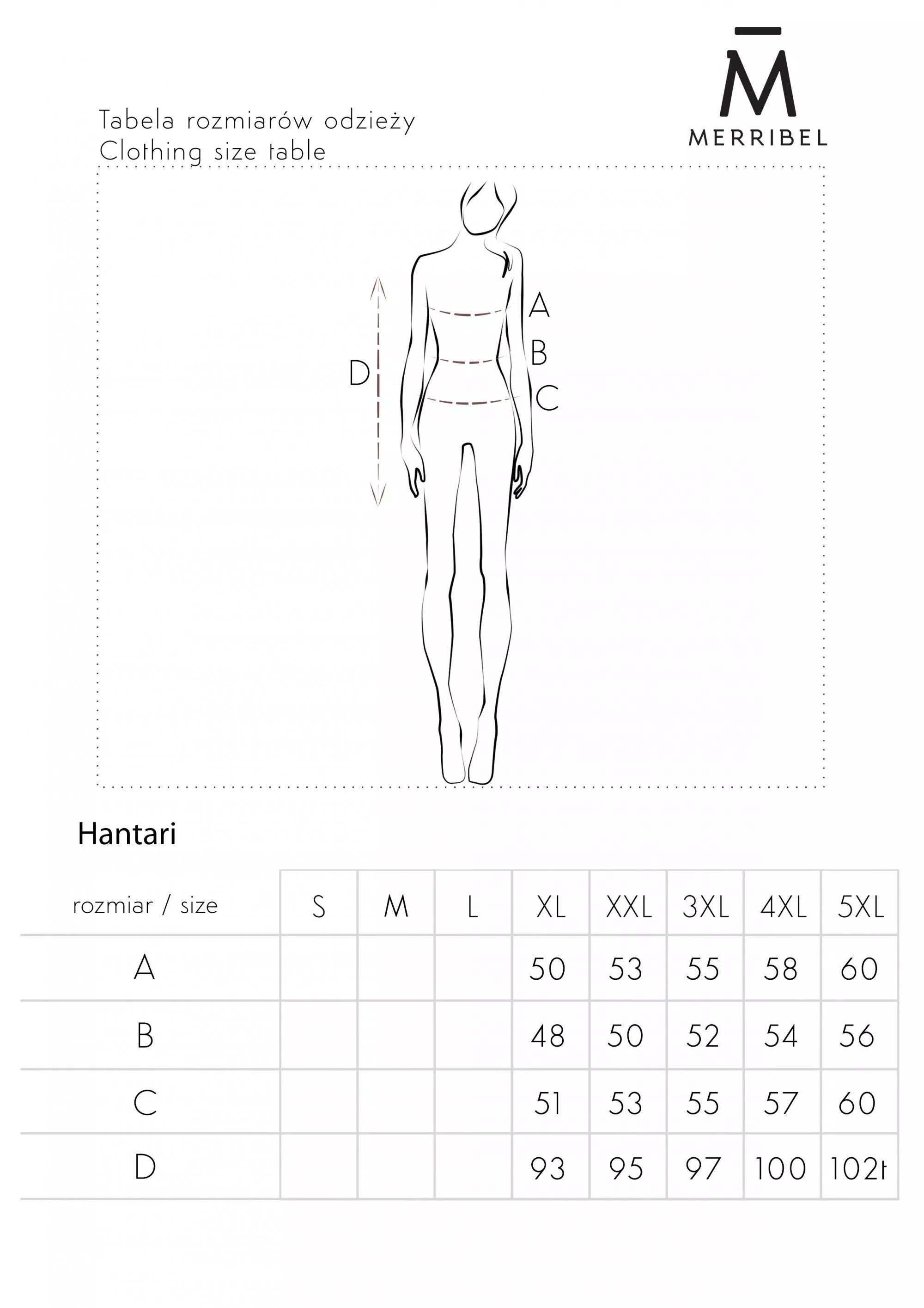 Marribel tamsiai mėlyna suknelė Hantari dekoruota perregimomis neriniuotomis rankovėmis, 3/4-ių rankovės. Suknelės audinys elastingas ir patogus. Suknelės matmenys pateikti paskutinėje prekės nuotraukoje.