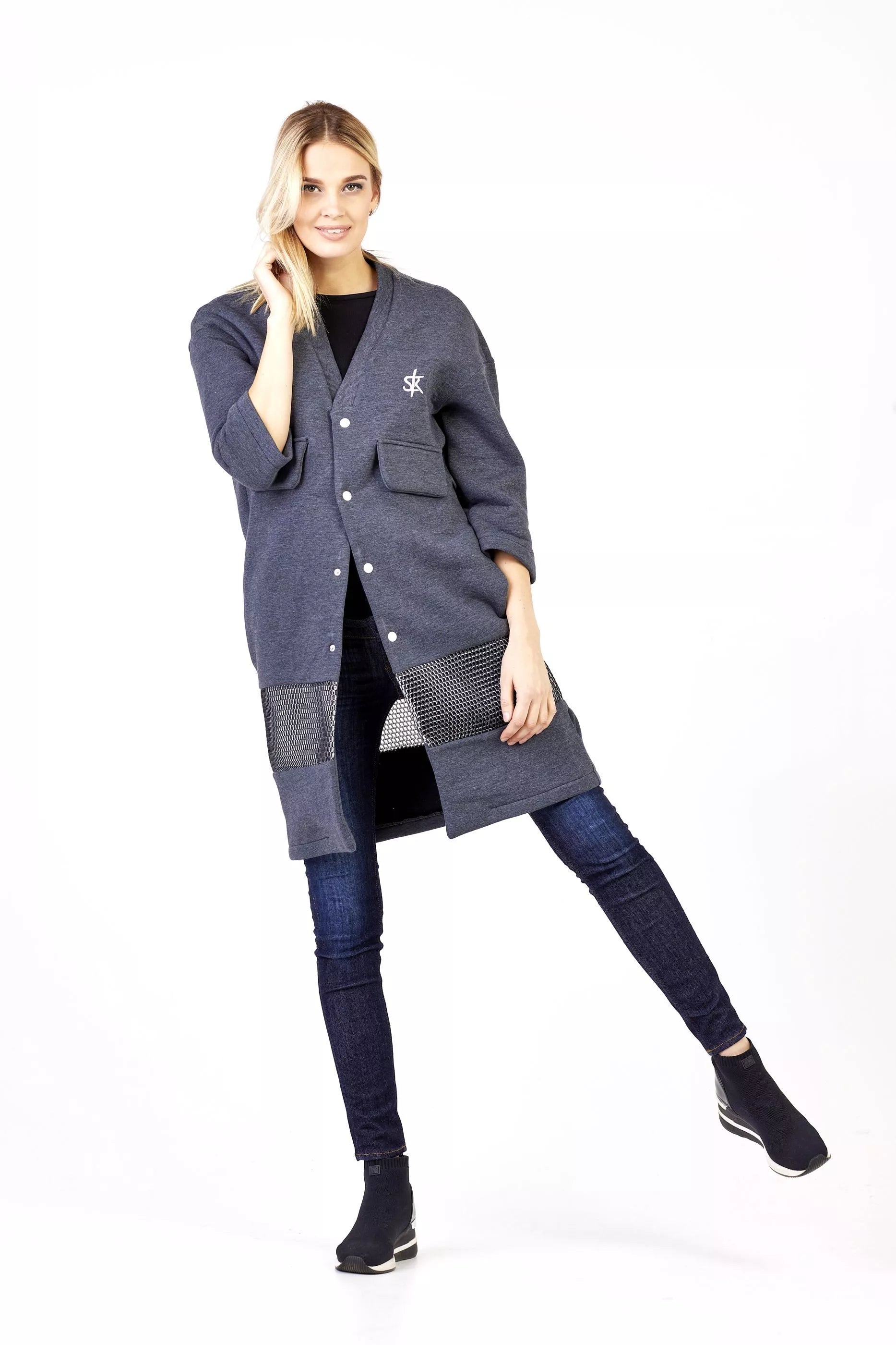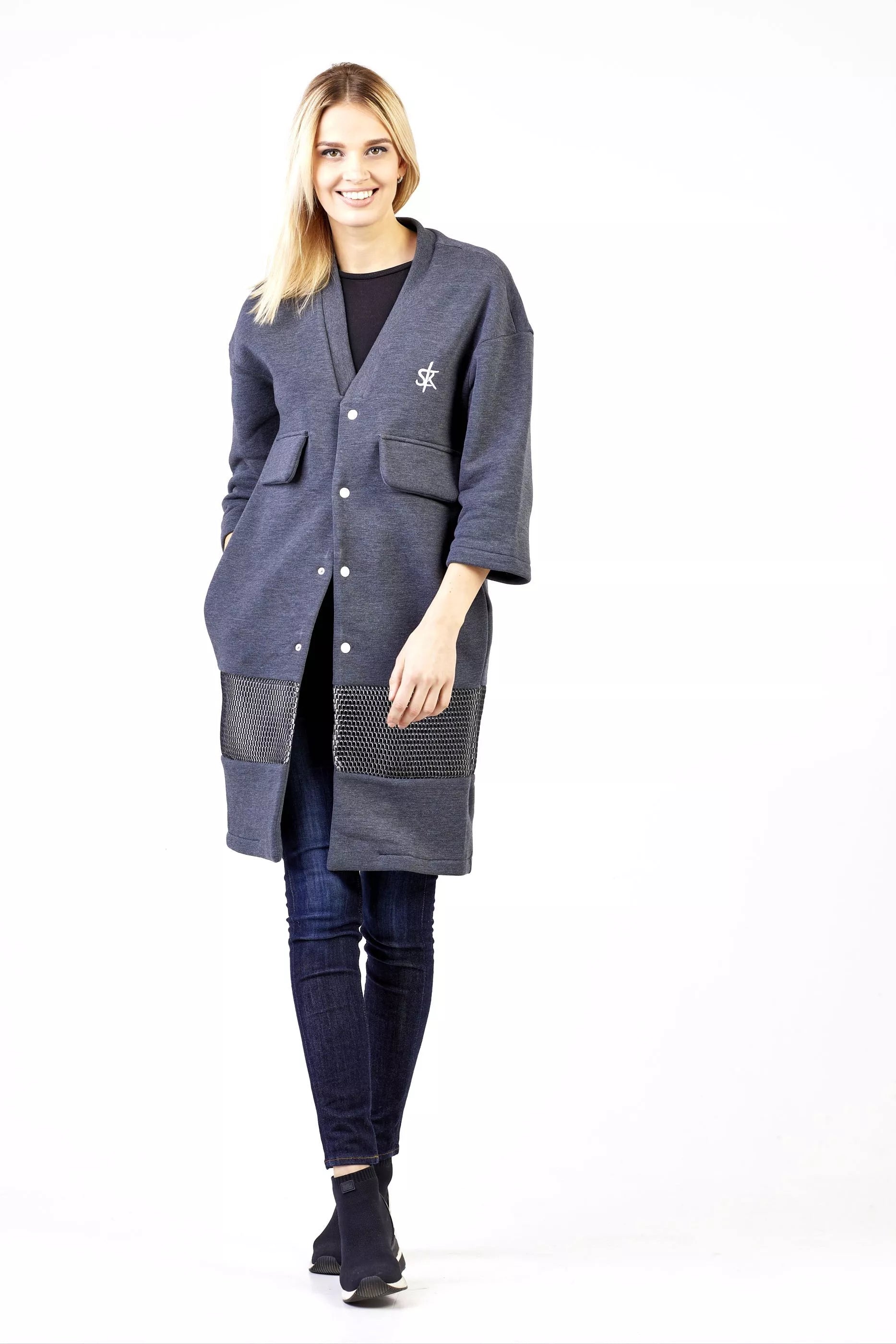 Šiltas jaukus Sofa Killer grafito spalvos ilgas švarkas/kimono su kišenėmis dekoruotas tinklo detalėmis, užsegamas sagomis. Medžiagos vidinė dalis su tankiu pūkeliu, kuris sukuria įpatingą šilumos jausmą ir norą vilkėti kimono nuolat. Sofa Killer kimono modeliai nevaržo judesių, tad puikiai tinka tiek pasyviam tiek aktyviam poilsiui. Rankovės trijų ketvirčių ilgio Galite rinktis iš plačios dydžių skalės, o pats rūbas tradiciškai turi būti laisvas, tad kiek didesnis dydis puikiai tiks, dekoruotas logotipu išsiuvinėtu ant krūtinės.