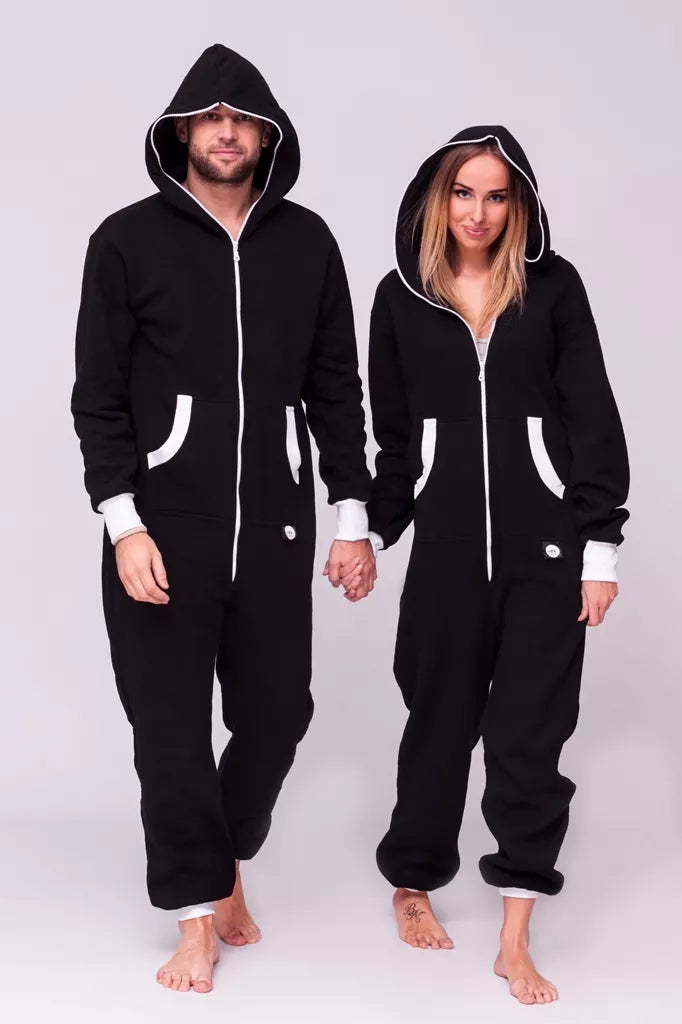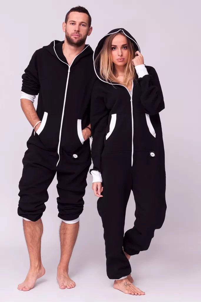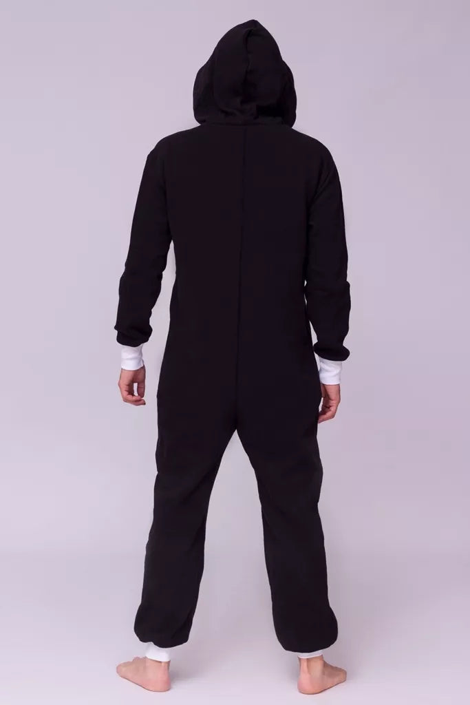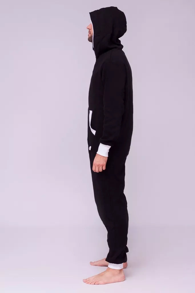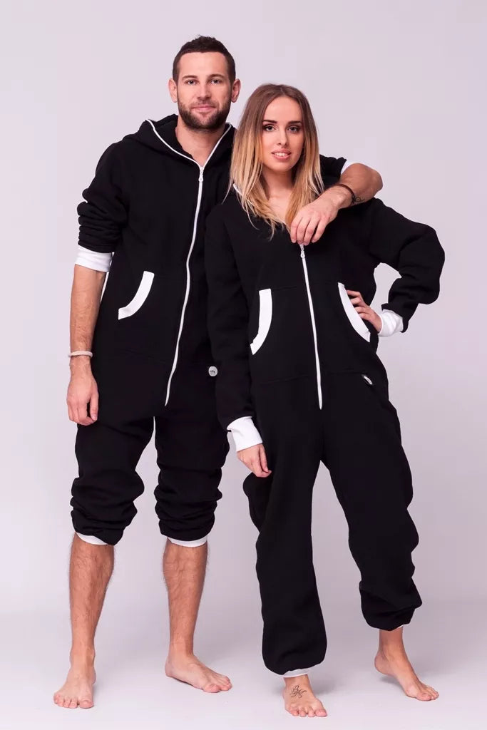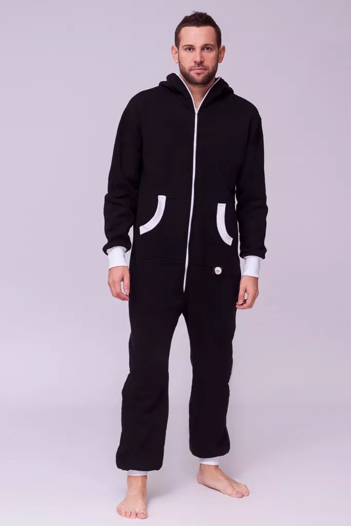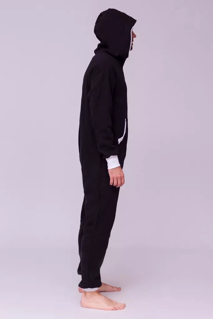 Šiltas jaukus juodas kombinezonas su baltais rankogaliais (bet galite pasirinkti Jums labiau patinkančią spalvą), skirtas tiek vyrams tiek moterims. Priekyje kišenės apsiūtos balta rankogalių medžiaga. Medžiagos vidinė dalis su tankiu pūkeliu, kuris sukuria įpatingą šilumos jausmą ir norą vilkėti kombinezoną nuolat. Sofa Killer kombinezonų modeliai nevaržo judesių, tad puikiai tinka tiek pasyviam tiek aktyviam poilsiui, net miegui. Galite rinktis iš plačios dydžių skalės, o pats rūbas tradiciškai turi būti laisvas, tad kiek didesnis dydis puikiai tiks. Dekoruota Sofa Killer logotipu po kišene.