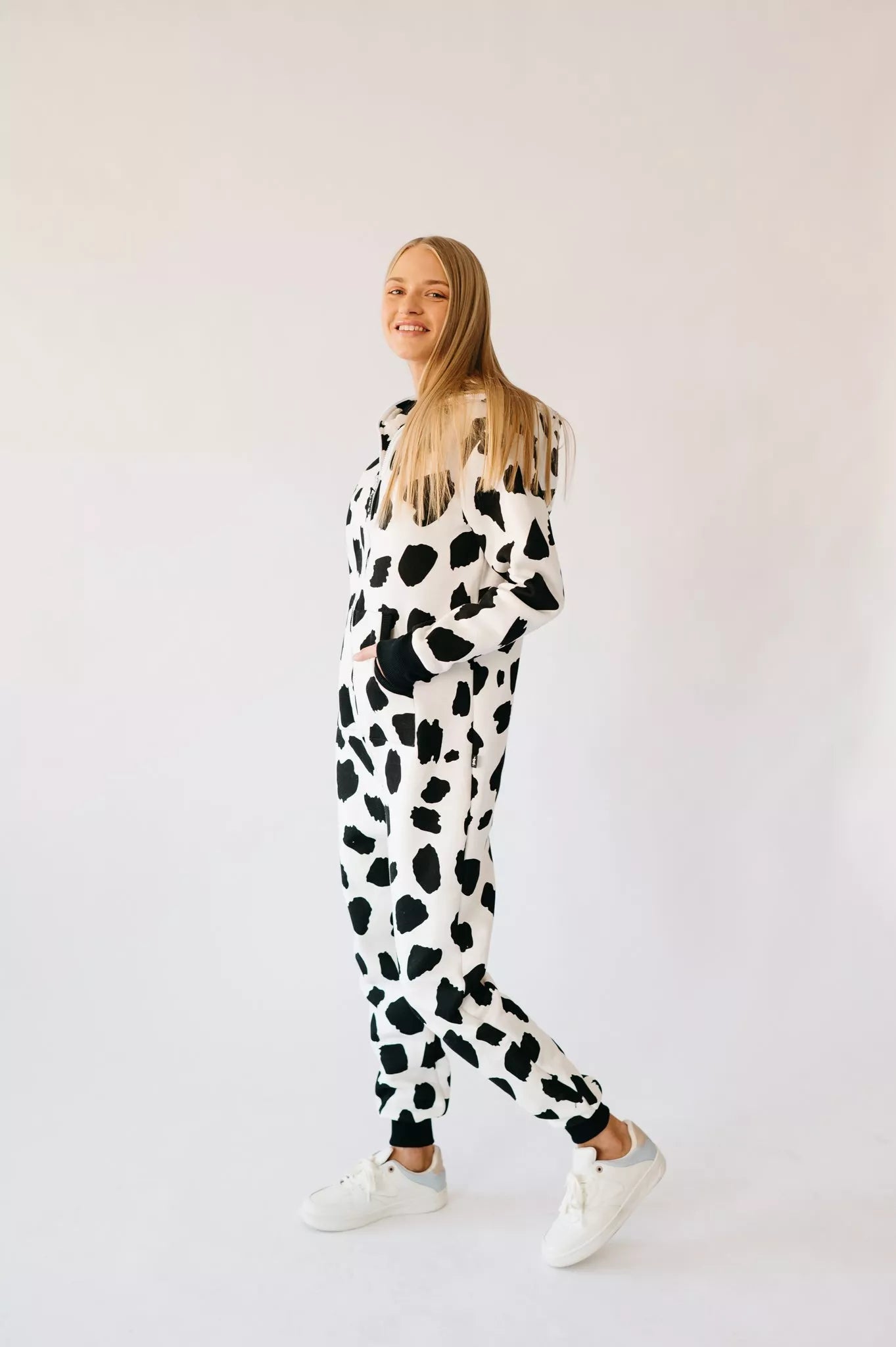 Ar esate pasiruošę smagiai praleisti laiką vilkėdami šį karvės raštu, baltu užtrauktuku viršuje ir juodais rankogaliais laisvalaikio kombinezoną? Jis ne tik gražiai atrodo – galime garantuoti, kad jums patiks būti su šiuo itin patogiu kombinezonu. Jūsų odai patiks kvėpuoti, nes kombinezonas pasiūtas iš 92% medvilnės ir 8% elastano bei poliesterio. Vilkint jį jausmas lyg dėvint antroją odą – galite jame atsipalaiduoti arba bėgioti kaip mažas laimingas vaikas. Su juo galėsite veikti absolučiai bet ką, kas džiugina jūsų širdį. Ei, jūreivi!