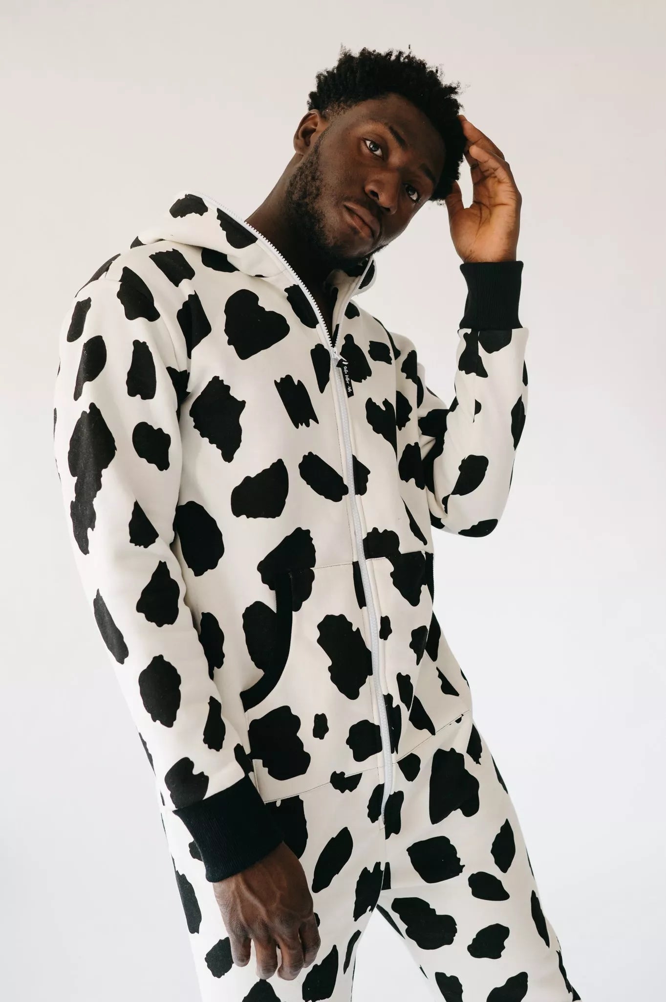 Ar esate pasiruošę smagiai praleisti laiką vilkėdami šį karvės raštu, baltu užtrauktuku viršuje ir juodais rankogaliais laisvalaikio kombinezoną? Jis ne tik gražiai atrodo – galime garantuoti, kad jums patiks būti su šiuo itin patogiu kombinezonu. Jūsų odai patiks kvėpuoti, nes kombinezonas pasiūtas iš 92% medvilnės ir 8% elastano bei poliesterio. Vilkint jį jausmas lyg dėvint antroją odą – galite jame atsipalaiduoti arba bėgioti kaip mažas laimingas vaikas. Su juo galėsite veikti absolučiai bet ką, kas džiugina jūsų širdį. Ei, jūreivi!