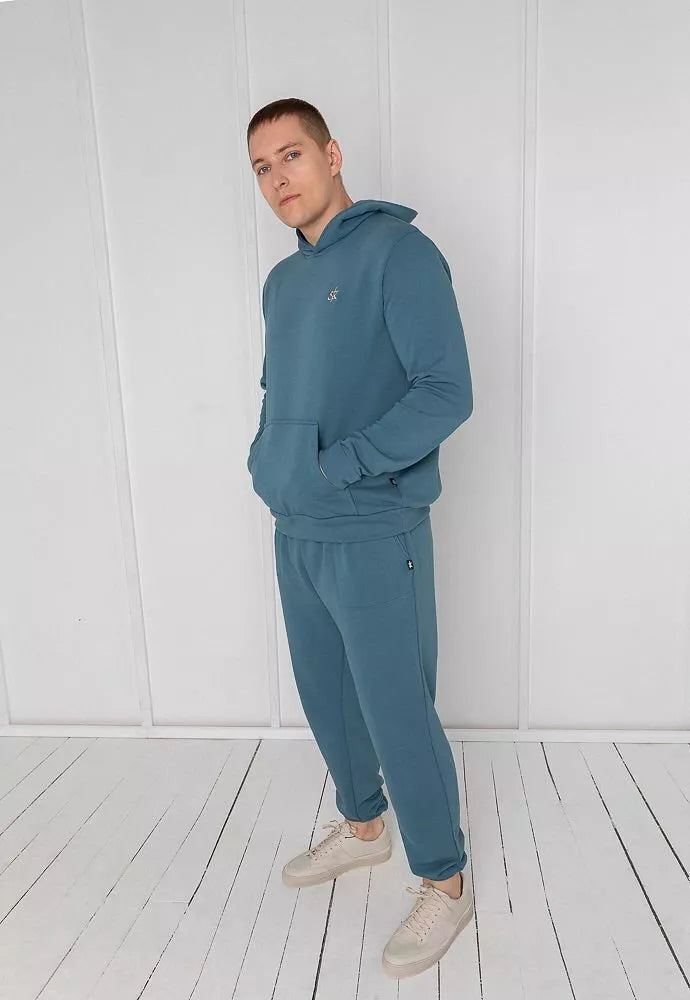 Sofa Killer mėlynas laisvalaikio kostiumas Blue Stone su siuvinėtu Sofa Killer logotipu su kelnėmis. Sofa Killer sportinių kostiumų modeliai nevaržo judesių, tad puikiai tinka tiek pasyviam tiek aktyviam poilsiui. Galite rinktis iš plačios dydžių skalės, o pats rūbas tradiciškai turi būti laisvas, tad kiek didesnis dydis puikiai tiks. Dekoruota Sofa Killer logotipu po kišene. Galite priderinti ir šortus.