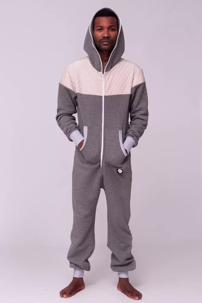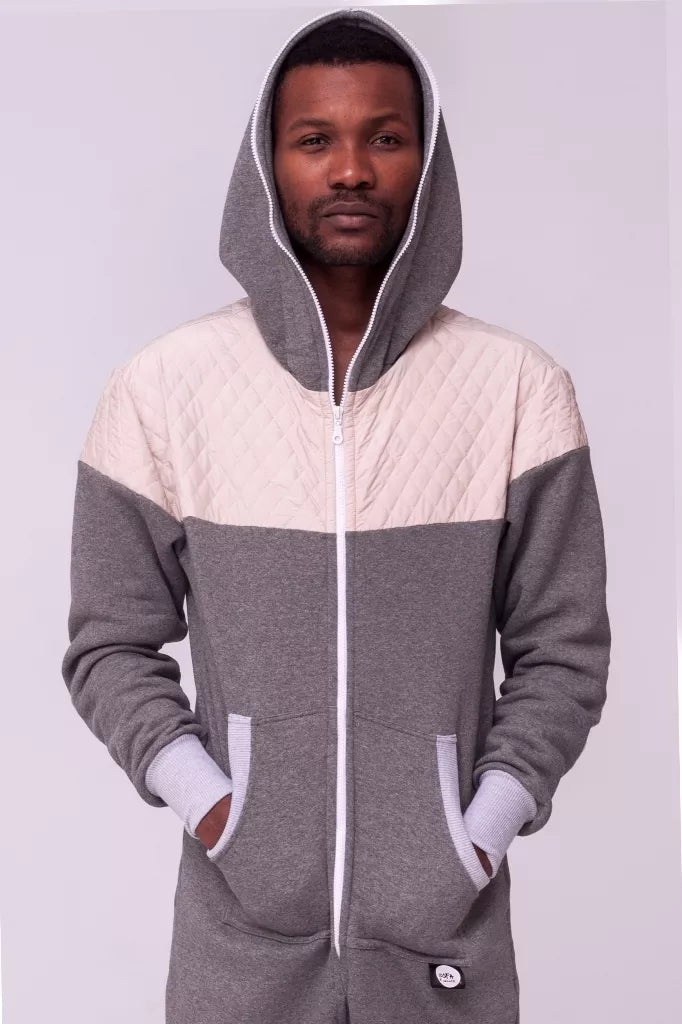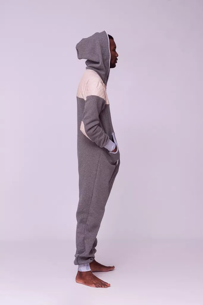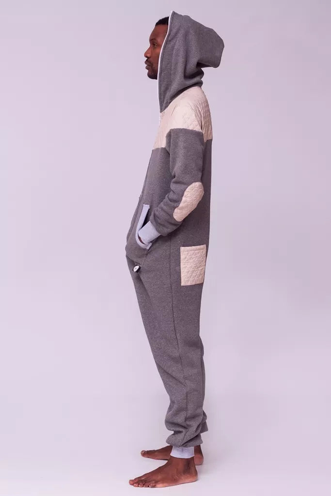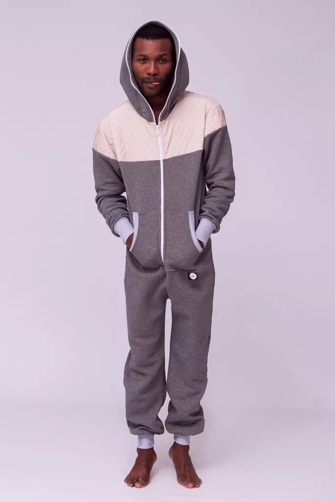 Šiltas jaukus kombinezonas su balintos kavos dygsniuotos medžiagos aplikacijomis ir pilkais rankogaliais (bet galite pasirinkti Jums labiau patinkančią spalvą), skirtas tiek vyrams tiek moterims. Kišenės priekyje ir viena nugaroje. Medžiagos vidinė dalis su tankiu pūkeliu, kuris sukuria įpatingą šilumos jausmą ir norą vilkėti kombinezoną nuolat. Sofa Killer kombinezonų modeliai nevaržo judesių, tad puikiai tinka tiek pasyviam tiek aktyviam poilsiui, net miegui. Galite rinktis iš plačios dydžių skalės, o pats rūbas tradiciškai turi būti laisvas, tad kiek didesnis dydis puikiai tiks. Dekoruota Sofa Killer logotipu po kišene.