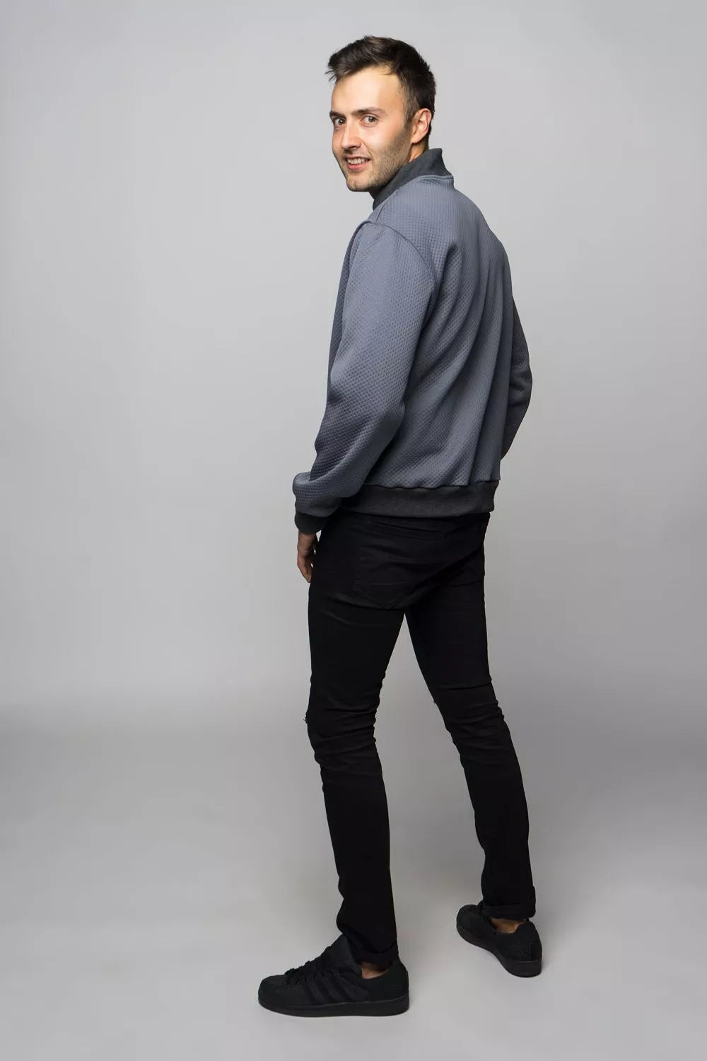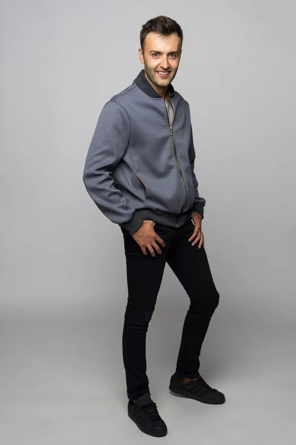 Sofa Killer pilkas vyriškas bomberis Cookie su tamsiai pilkais rankogaliais, šonuose kišenės, pasiūtas iš standaus ir minkšto polipropeleno. Galite rinktis iš plačios dydžių skalės, o pats rūbas tradiciškai turi būti laisvas, tad kiek didesnis dydis puikiai tiks.