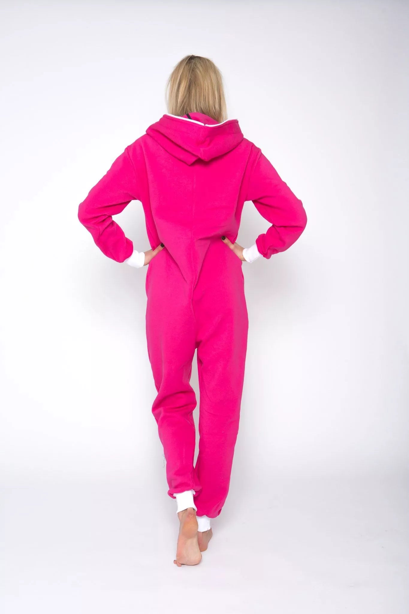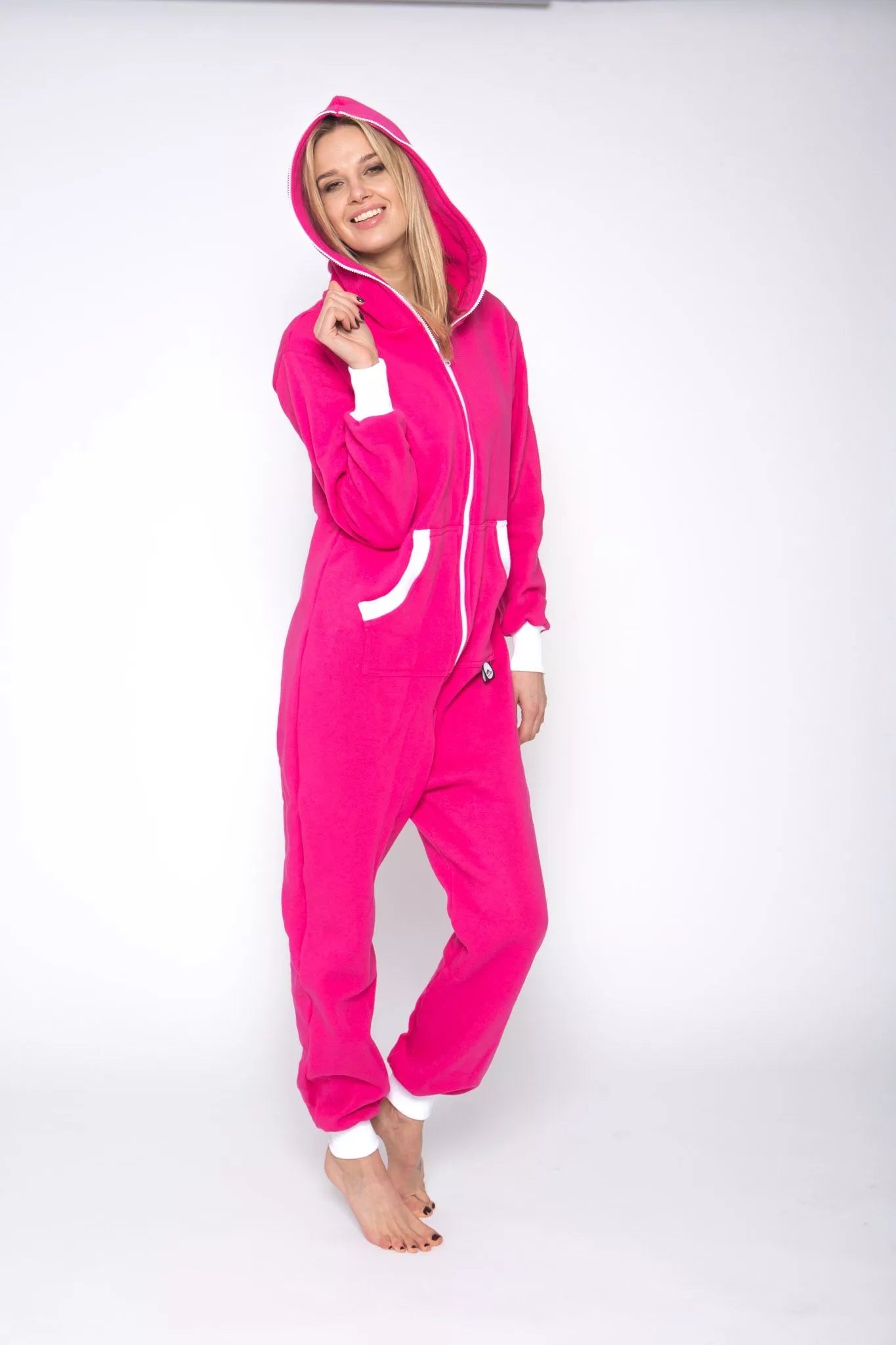 Šiltas jaukus rožinis kombinezonas su baltais rankogaliais (bet galite pasirinkti Jums labiau patinkančią spalvą), skirtas tiek vyrams tiek moterims. Priekyje kišenės apsiūtos balta rankogalių medžiaga. Medžiagos vidinė dalis su tankiu pūkeliu, kuris sukuria įpatingą šilumos jausmą ir norą vilkėti kombinezoną nuolat. Sofa Killer kombinezonų modeliai nevaržo judesių, tad puikiai tinka tiek pasyviam tiek aktyviam poilsiui, net miegui. Galite rinktis iš plačios dydžių skalės, o pats rūbas tradiciškai turi būti laisvas, tad kiek didesnis dydis puikiai tiks. Dekoruota Sofa Killer logotipu po kišene.