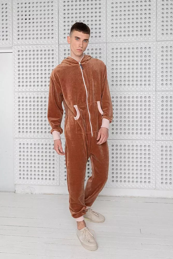 Sofa Killer rudas veliūrinis kombinezonas su juodais rankogaliais (bet galite pasirinkti Jums labiau patinkančią spalvą), slim fit tipo, skirtas tiek vyrams tiek moterims. Kišenės priekyje ir užtrauktukas iki pat kapišono viršaus. Medžiaga švelni ir jauki, sukuria įpatingą šilumos jausmą ir norą vilkėti kombinezoną nuolat. Sofa Killer kombinezonų modeliai nevaržo judesių, tad puikiai tinka tiek pasyviam tiek aktyviam poilsiui, net miegui. Galite rinktis iš plačios dydžių skalės, o pats rūbas tradiciškai turi būti laisvas, tad kiek didesnis dydis puikiai tiks. Dekoruota Sofa Killer logotipu po kišene.
