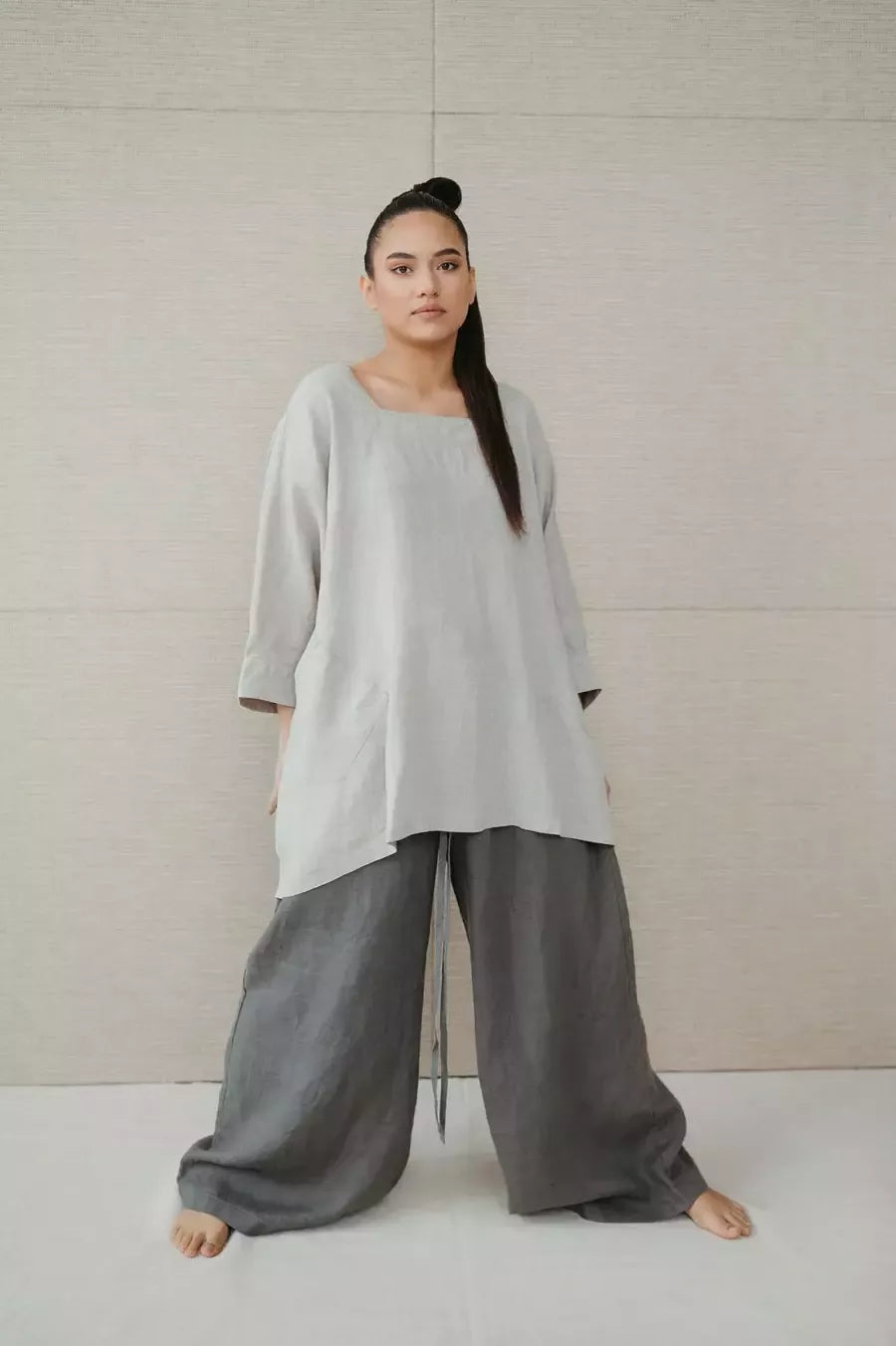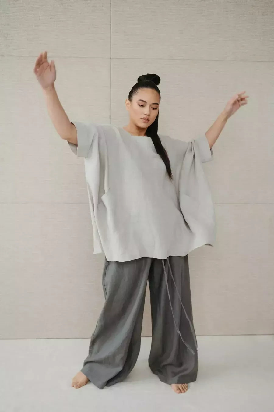 Ilgi ir apkritę marškinėliai pasiūti iš natūralaus neperregimo minkštinto švelnios smėlio spalvos lino, storis 220 g/m2, lengvai skalbiasi ir nėra linkęs glamžytis. Marškinėliai trumpomis rankovėmis, marškinių kirpimas sukuria perdidelio rūbo įvaizdį, lengvi ir vasariški. Sudėtis 100% linas. Gamintojas SofaKiller, pagaminta Lietuvoje. Esant klausimam ar individualaus užsakymo poreikiui prašome susisiekti.
