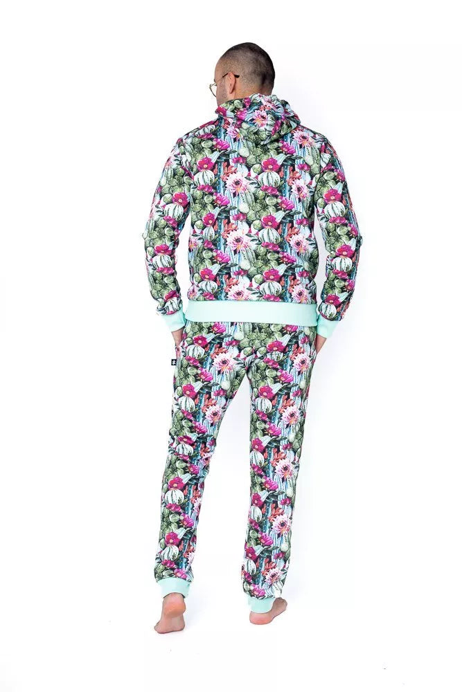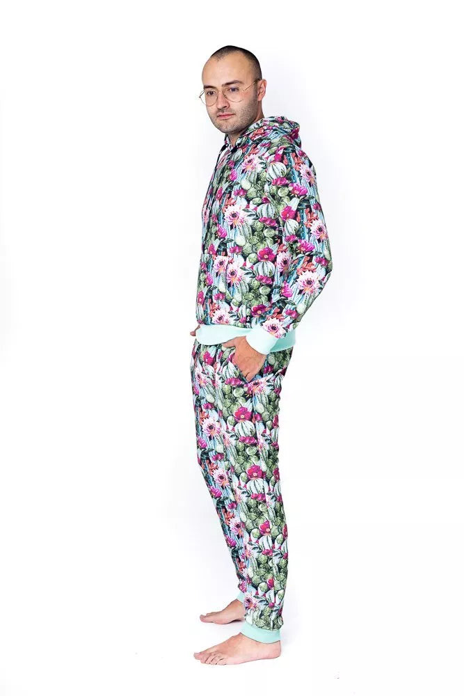 Šiltas jaukus Sofa Killer kaktusų rašto spauda dekoruotas sportinis kostiumas su raudonais rankogaliais.. Medžiagos vidinė dalis su tankiu pūkeliu, kuris sukuria įpatingą šilumos jausmą ir norą vilkėti džemperį nuolat. Sofa Killer džemperių modeliai nevaržo judesių, tad puikiai tinka tiek pasyviam tiek aktyviam poilsiui.