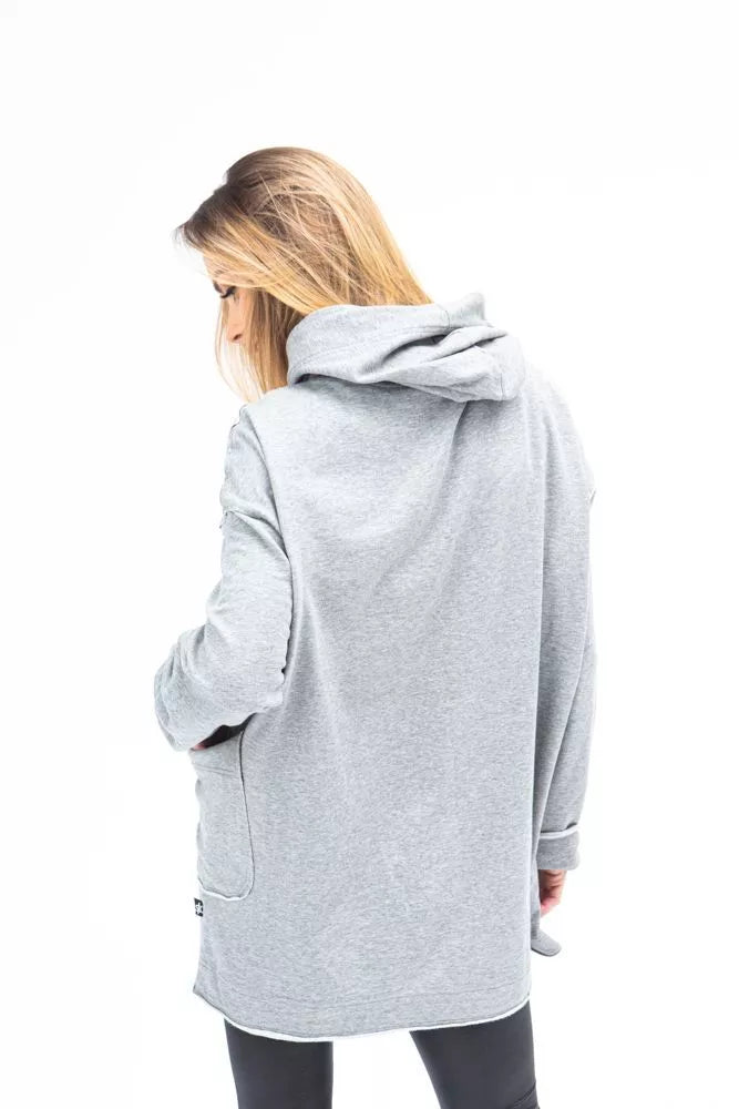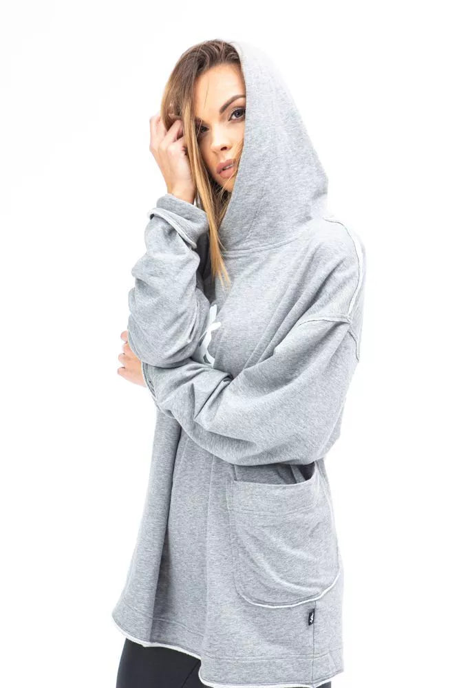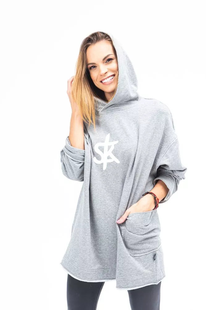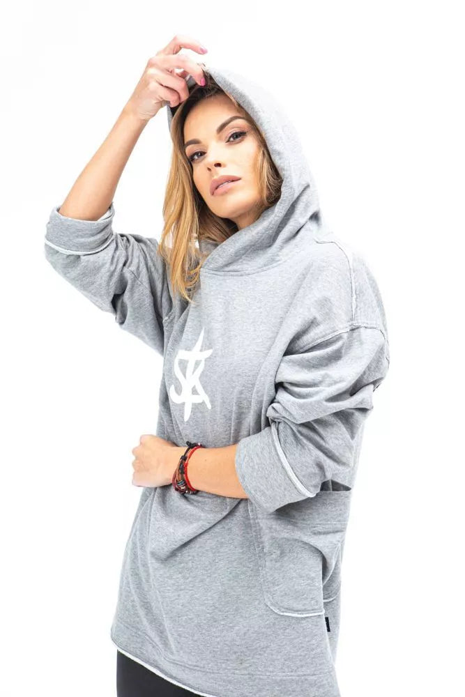 Sofa Killer šviesiai pilkas ilgas džemperis su baltu SK logotipu su viena didele kišene šone. Medžiagos vidinė dalis su pūkeliu, kuris sukuria įpatingą jaukumo jausmą ir norą vilkėti džemperį nuolat. Sofa Killer džemperių modeliai nevaržo judesių, tad puikiai tinka tiek pasyviam tiek aktyviam poilsiui.
