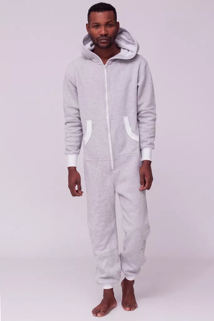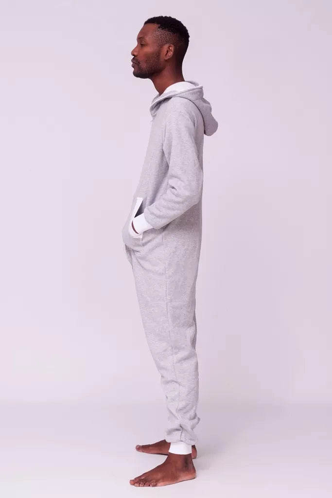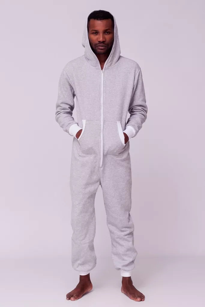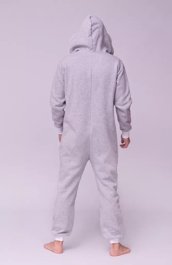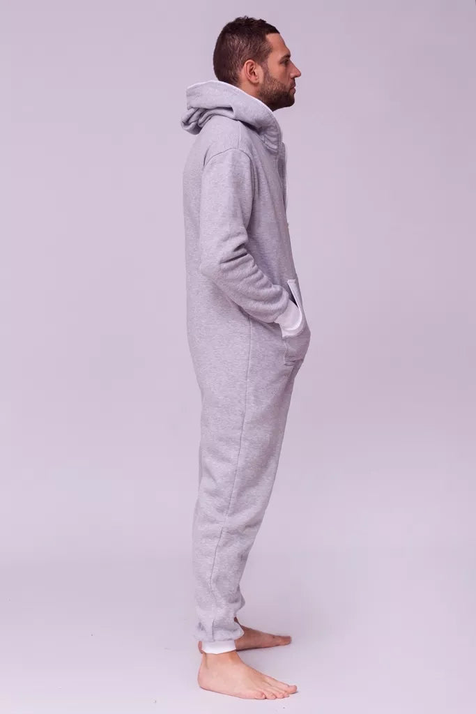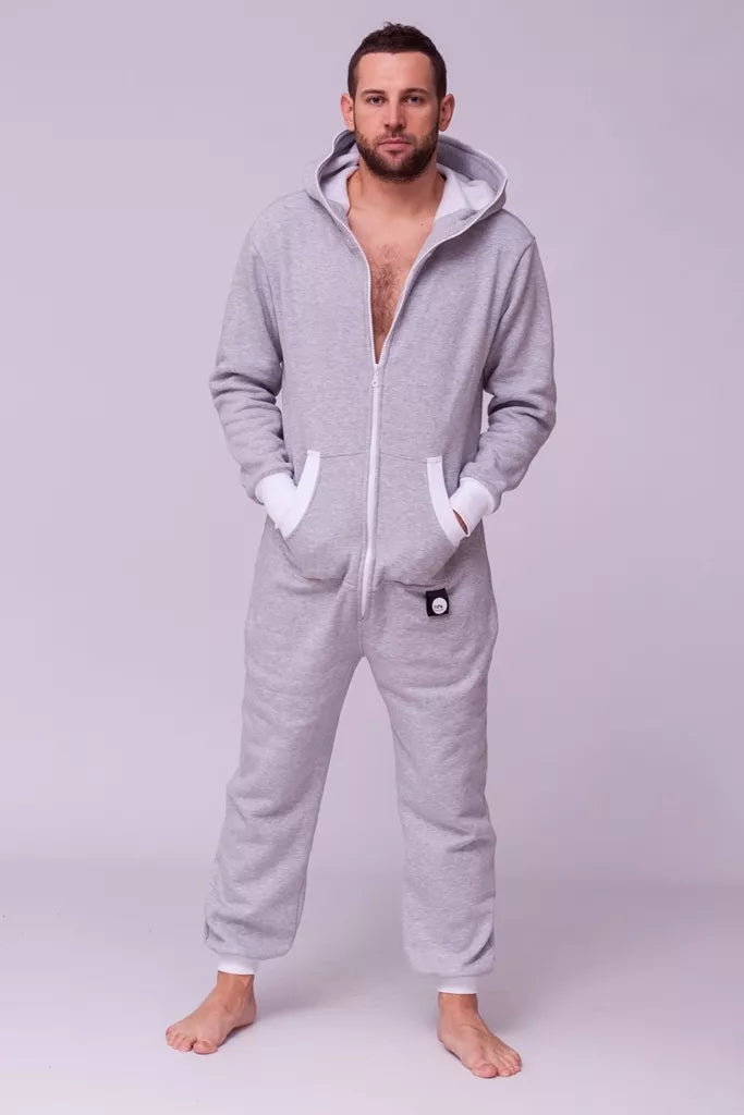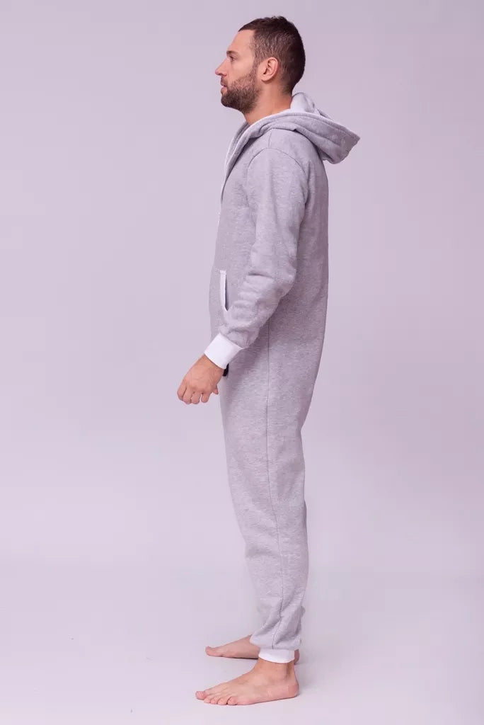 Šiltas jaukus šviesiai pilkas kombinezonas su baltais rankogaliais, skirtas tiek vyrams tiek moterims. Priekyje kišenės apsiūtos balta rankogalių medžiaga. Medžiagos vidinė dalis su tankiu pūkeliu, kuris sukuria įpatingą šilumos jausmą ir norą vilkėti kombinezoną nuolat. Sofa Killer kombinezonų modeliai nevaržo judesių, tad puikiai tinka tiek pasyviam tiek aktyviam poilsiui, net miegui. Galite rinktis iš plačios dydžių skalės, o pats rūbas tradiciškai turi būti laisvas, tad kiek didesnis dydis puikiai tiks. Dekoruota Sofa Killer logotipu po kišene.