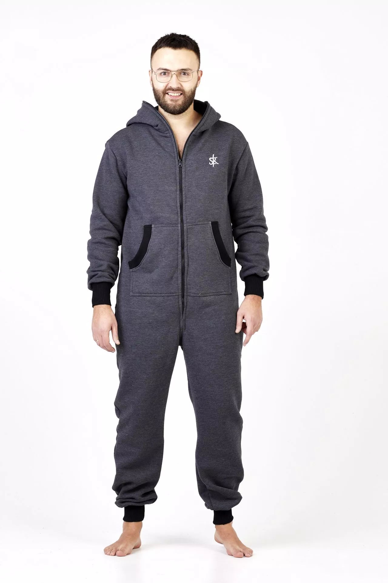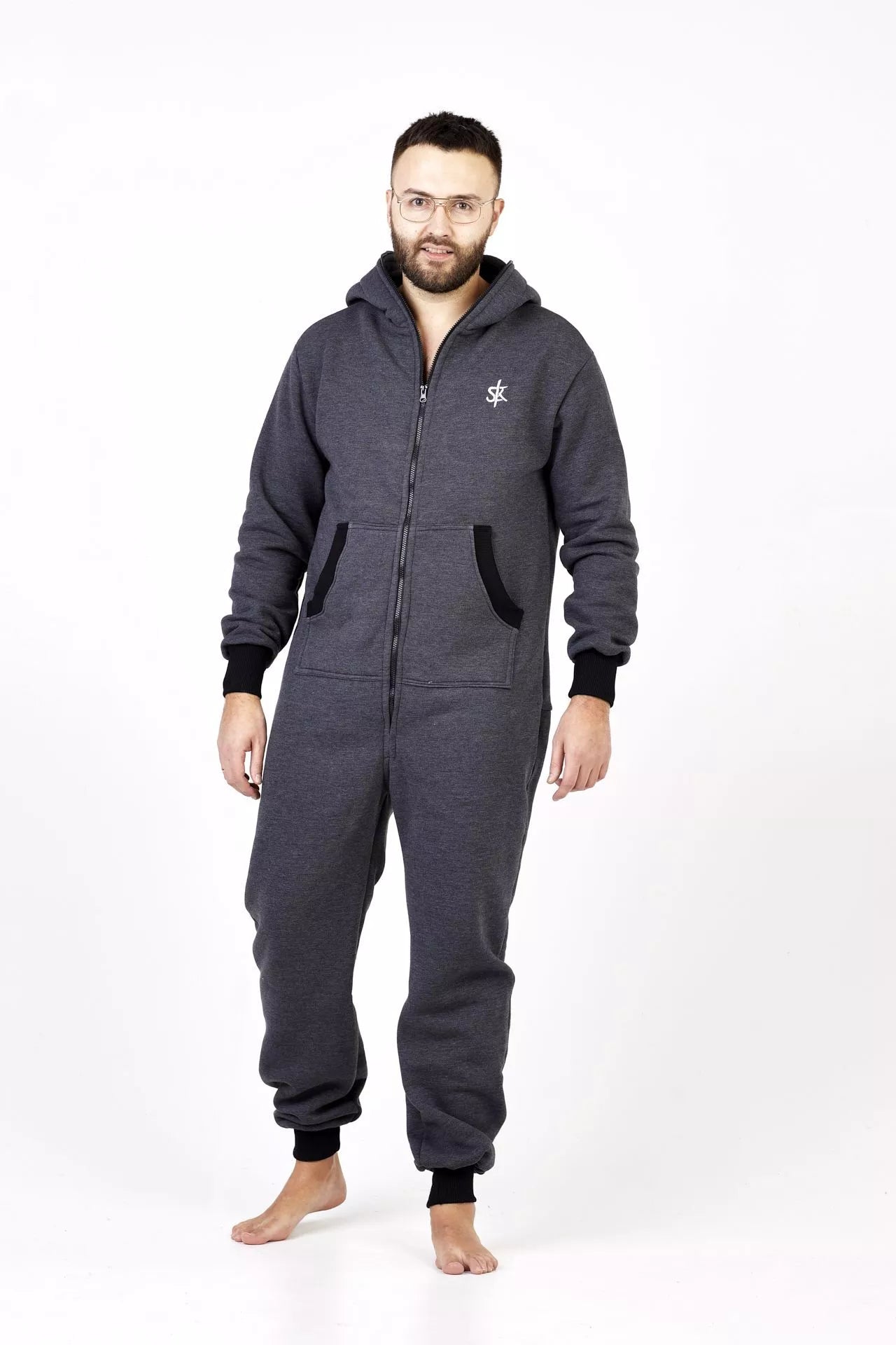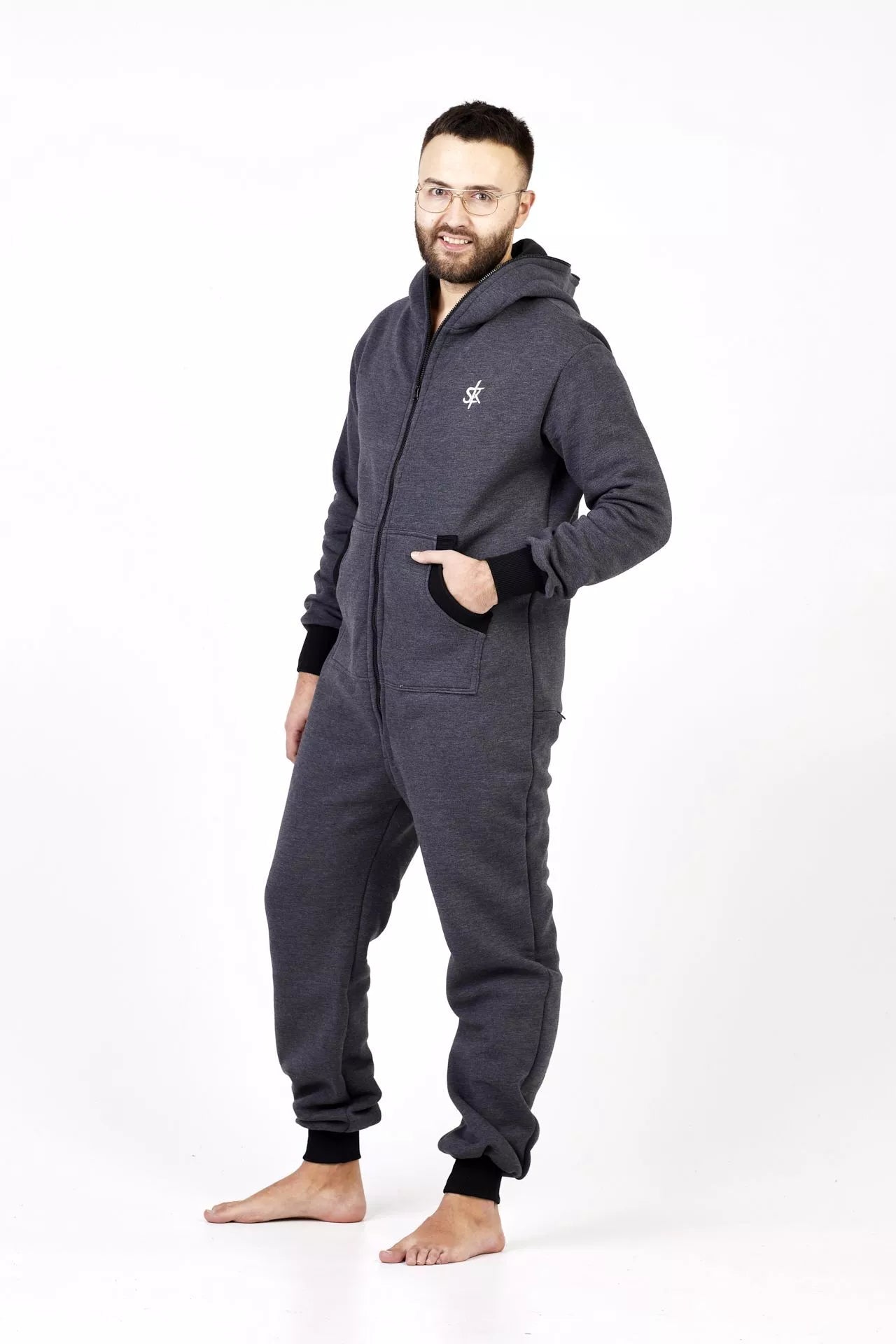 Šiltas jaukus tamsiai pilkas (melandžo) kombinezonas su juodais rankogaliais ir juodu užtrauktuku bei papildomu užtrauktuku nugaroje, skirtas tiek vyrams tiek moterims. Priekyje kišenės apsiūtos juoda rankogalių medžiaga. Medžiagos vidinė dalis su tankiu pūkeliu, kuris sukuria įpatingą šilumos jausmą ir norą vilkėti kombinezoną nuolat. Sofa Killer kombinezonų modeliai nevaržo judesių, tad puikiai tinka tiek pasyviam tiek aktyviam poilsiui, net miegui. Galite rinktis iš plačios dydžių skalės, o pats rūbas tradiciškai turi būti laisvas, tad kiek didesnis dydis puikiai tiks. Dekoruotas Sofa KIller logotipu išsiuvinėtu ant krūtinės.