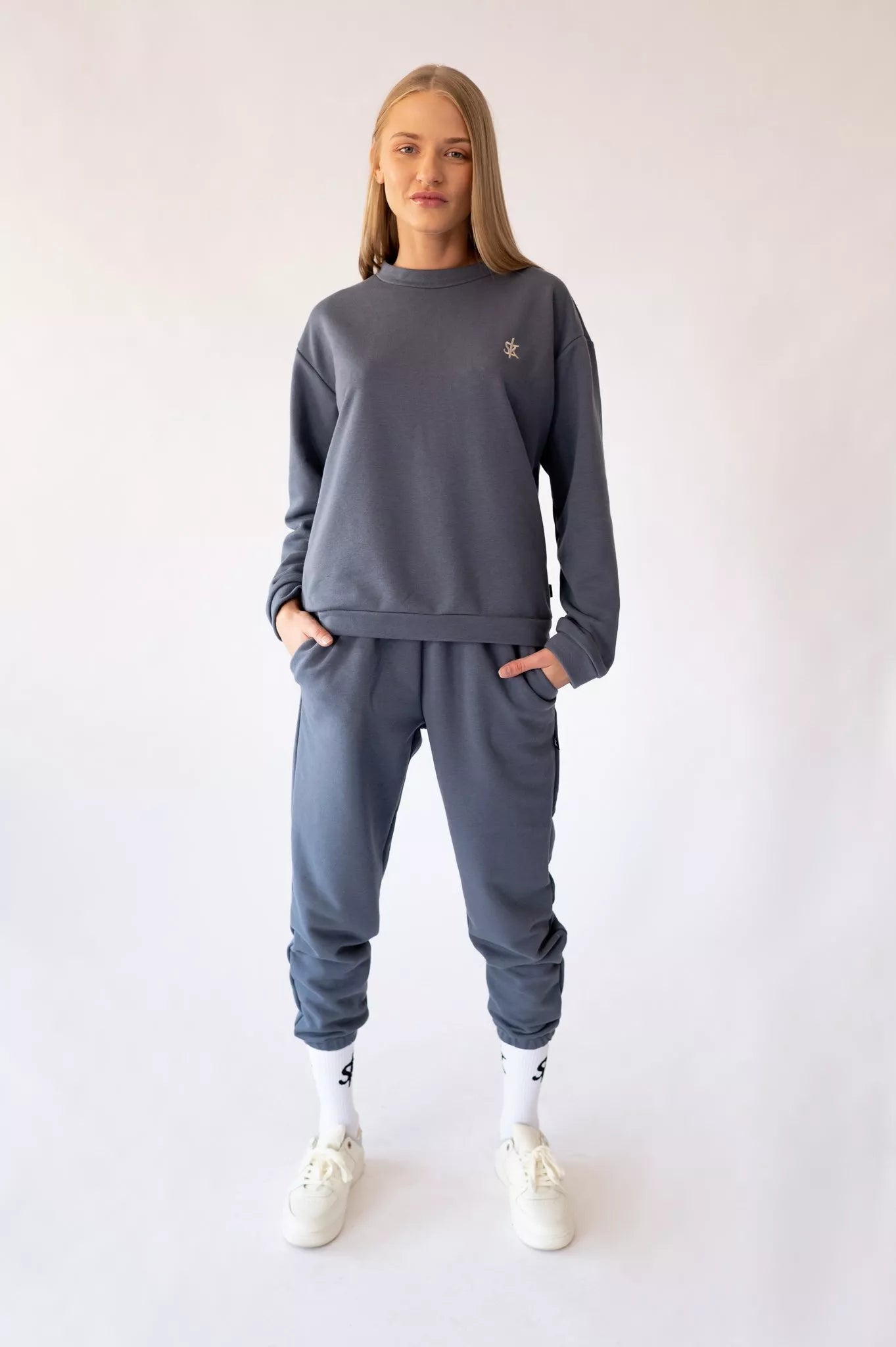 Sofa Killer tamsiai pilkos spalvos laisvalaikio kostiumas Rock, su siuvinėtu Sofa Killer logotipu su kelnėmis. Sofa Killer sportinių kostiumų modeliai nevaržo judesių, tad puikiai tinka tiek pasyviam tiek aktyviam poilsiui. Galite rinktis iš plačios dydžių skalės, o pats rūbas tradiciškai turi būti laisvas, tad kiek didesnis dydis puikiai tiks. Dekoruota Sofa Killer logotipu po kišene. Galite priderinti ir šortus.