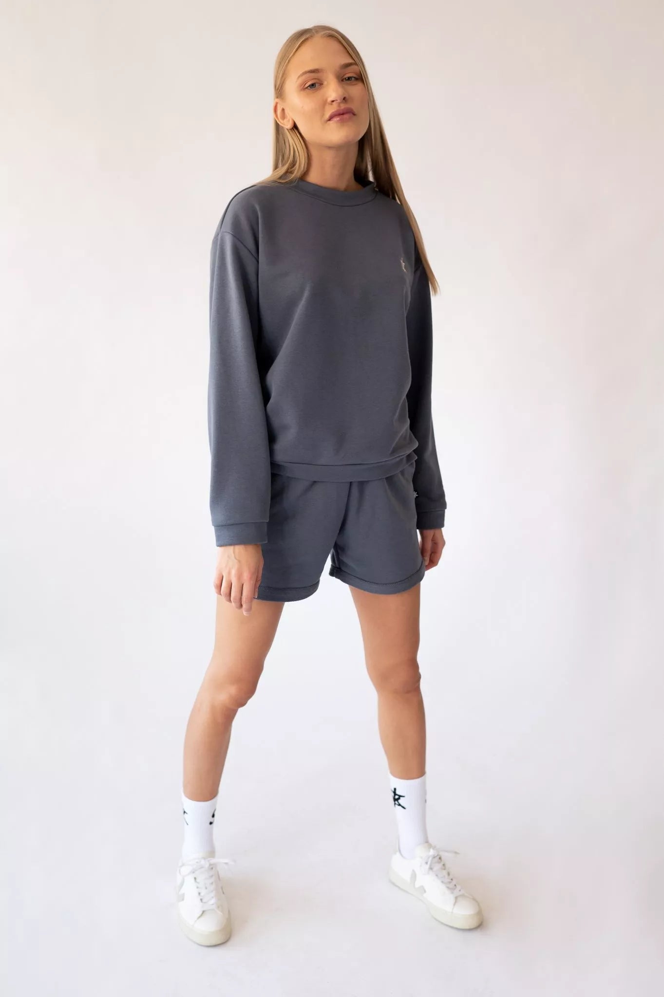 Sofa Killer tamsiai pilkos spalvos laisvalaikio kostiumas Rock, su siuvinėtu Sofa Killer logotipu su šortais. Sofa Killer sportinių kostiumų modeliai nevaržo judesių, tad puikiai tinka tiek pasyviam tiek aktyviam poilsiui. Galite rinktis iš plačios dydžių skalės, o pats rūbas tradiciškai turi būti laisvas, tad kiek didesnis dydis puikiai tiks. Dekoruota Sofa Killer logotipu po kišene. Galite priderinti ir kelnes.