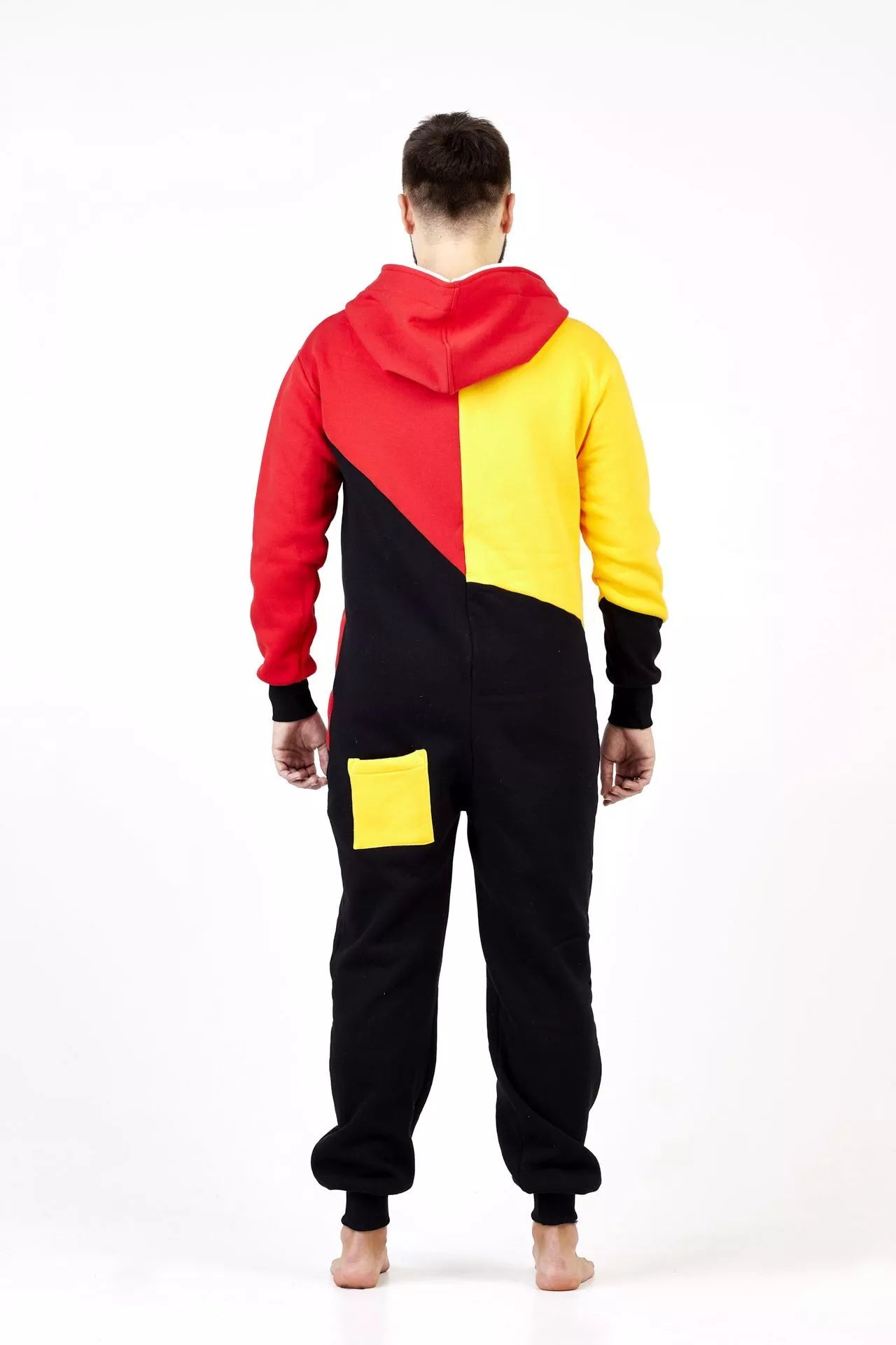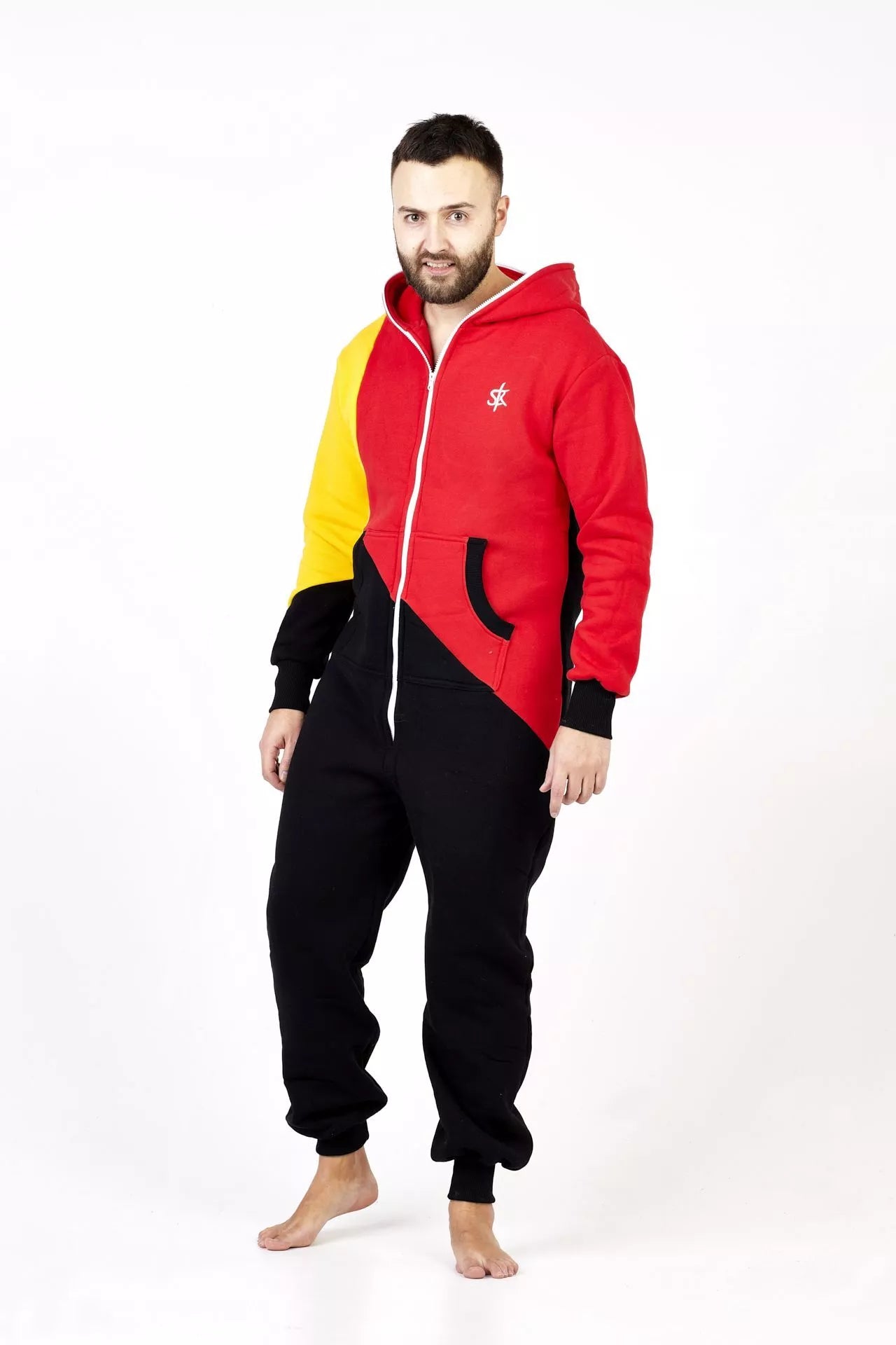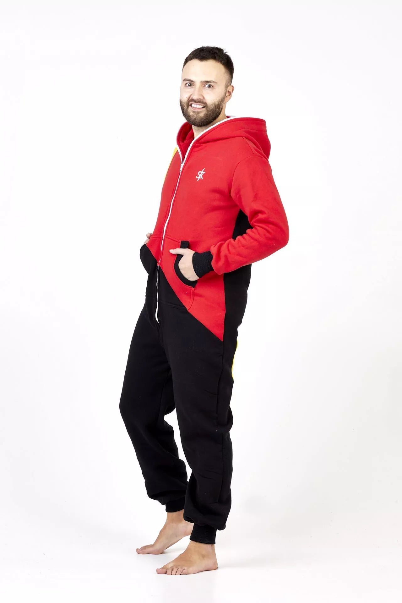 Šiltas trispalvis raudonos, juodos ir geltonos spalvos kombinezonas BruBer, skirtas tiek vyrams tiek moterims. Kišenės priekyje ir viena nugaroje. Medžiagos vidinė dalis su tankiu pūkeliu, kuris sukuria įpatingą šilumos jausmą ir norą vilkėti kombinezoną nuolat. Sofa Killer kombinezonų modeliai nevaržo judesių, tad puikiai tinka tiek pasyviam tiek aktyviam poilsiui, net miegui. Galite rinktis iš plačios dydžių skalės, o pats rūbas tradiciškai turi būti laisvas, tad kiek didesnis dydis puikiai tiks. Dekoruotas Sofa KIller logotipu išsiuvinėtu ant krūtinės.
