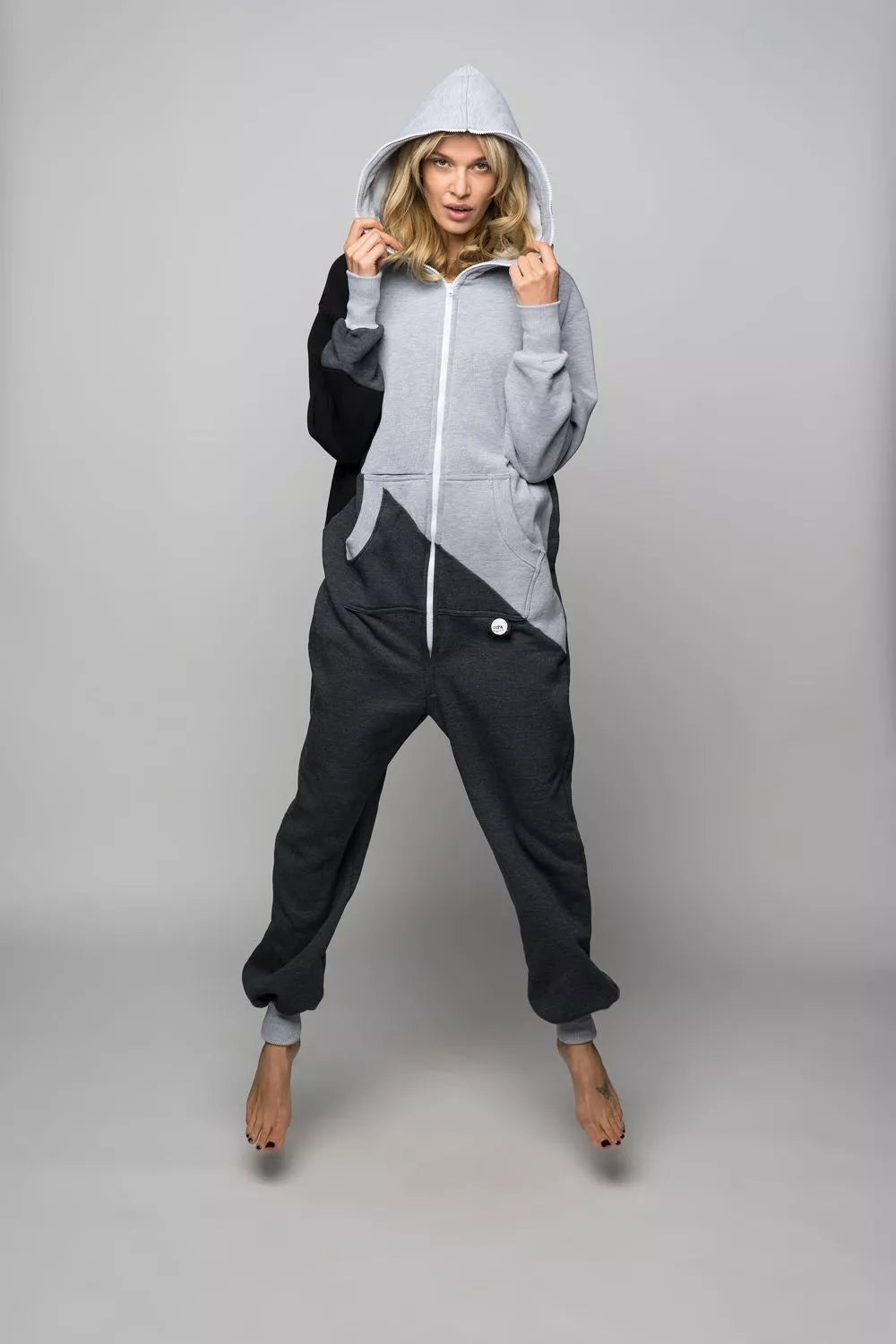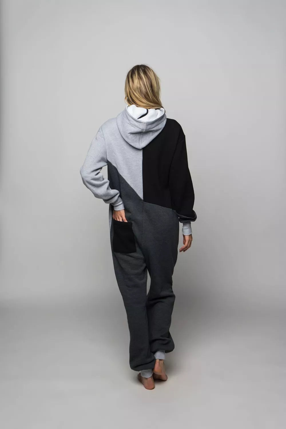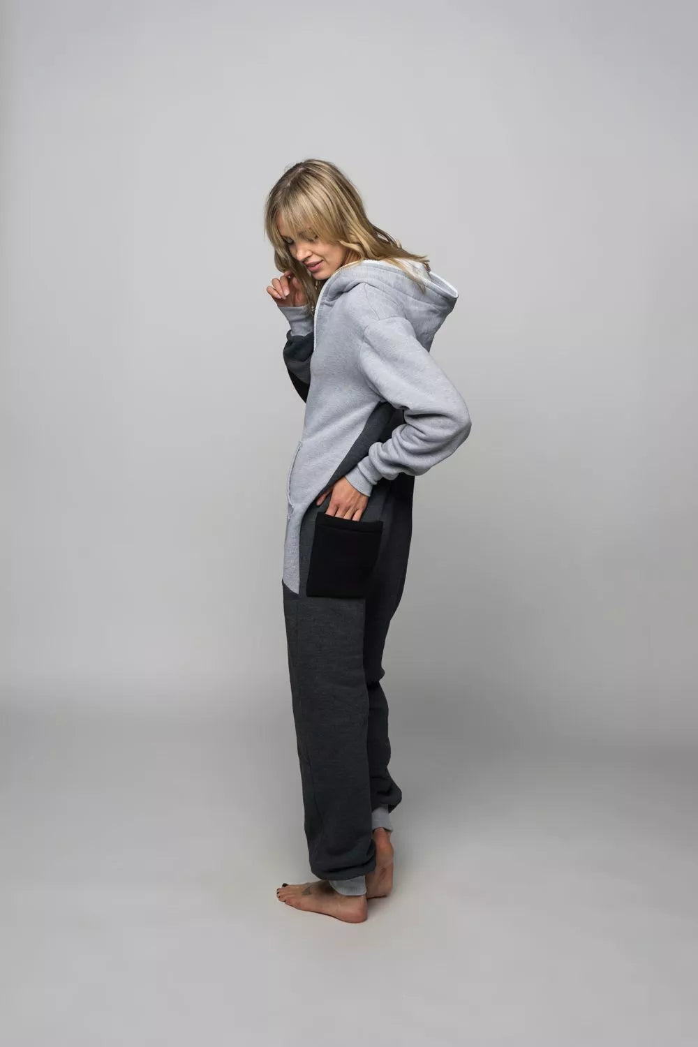 Šiltas trispalvis kombinezonas Grey su pilkais rankogaliais, skirtas tiek vyrams tiek moterims. Kišenės priekyje ir viena nugaroje. Medžiagos vidinė dalis su tankiu pūkeliu, kuris sukuria įpatingą šilumos jausmą ir norą vilkėti kombinezoną nuolat. Sofa Killer kombinezonų modeliai nevaržo judesių, tad puikiai tinka tiek pasyviam tiek aktyviam poilsiui, net miegui. Galite rinktis iš plačios dydžių skalės, o pats rūbas tradiciškai turi būti laisvas, tad kiek didesnis dydis puikiai tiks. Dekoruota Sofa Killer logotipu po kišene priekyje.