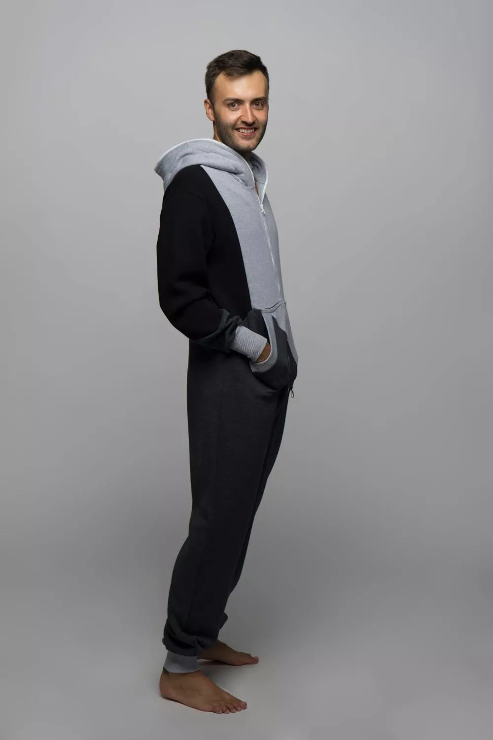 Šiltas trispalvis kombinezonas Grey su pilkais rankogaliais, skirtas tiek vyrams tiek moterims. Kišenės priekyje ir viena nugaroje. Medžiagos vidinė dalis su tankiu pūkeliu, kuris sukuria įpatingą šilumos jausmą ir norą vilkėti kombinezoną nuolat. Sofa Killer kombinezonų modeliai nevaržo judesių, tad puikiai tinka tiek pasyviam tiek aktyviam poilsiui, net miegui. Galite rinktis iš plačios dydžių skalės, o pats rūbas tradiciškai turi būti laisvas, tad kiek didesnis dydis puikiai tiks. Dekoruota Sofa Killer logotipu po kišene priekyje.