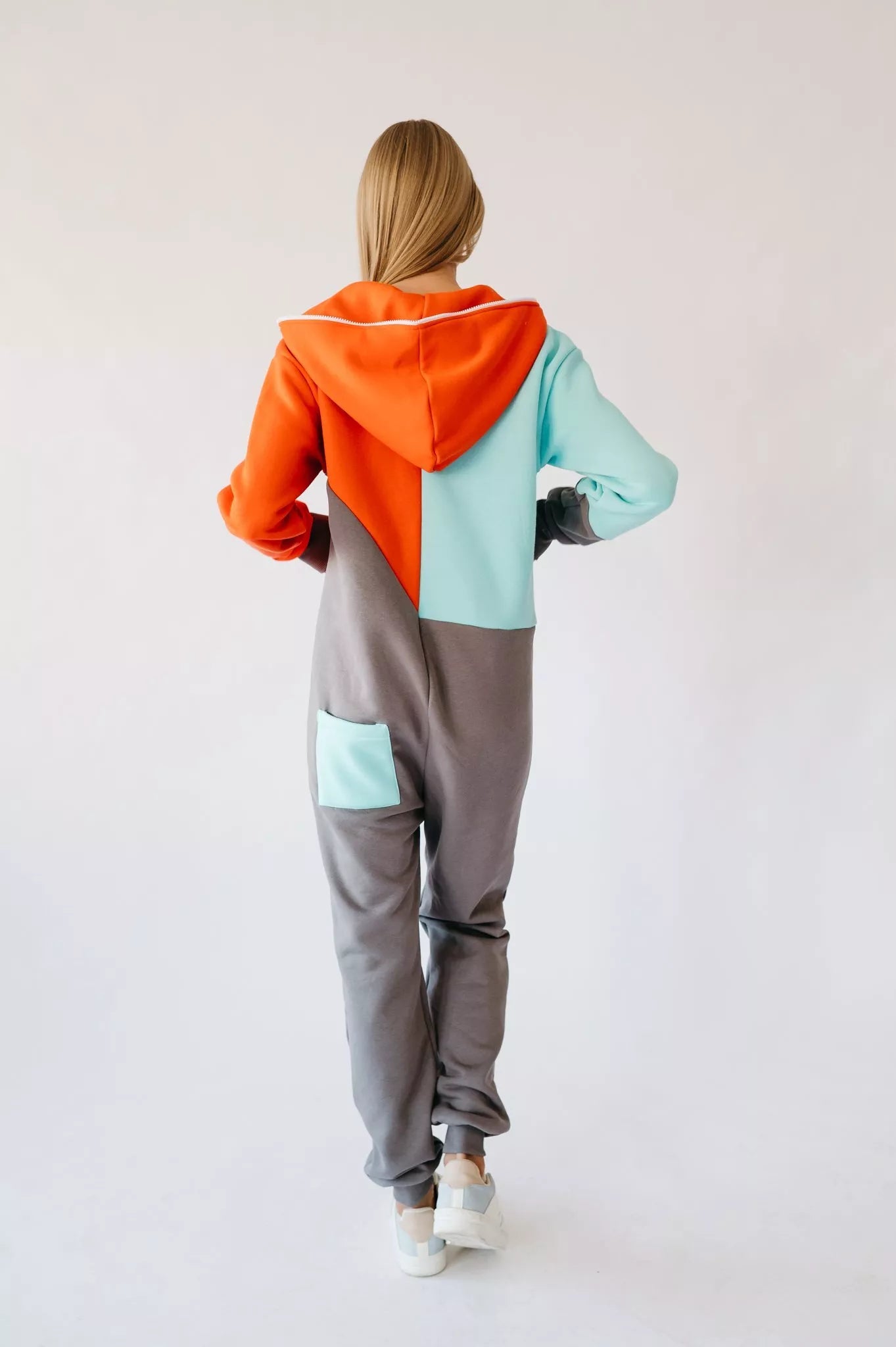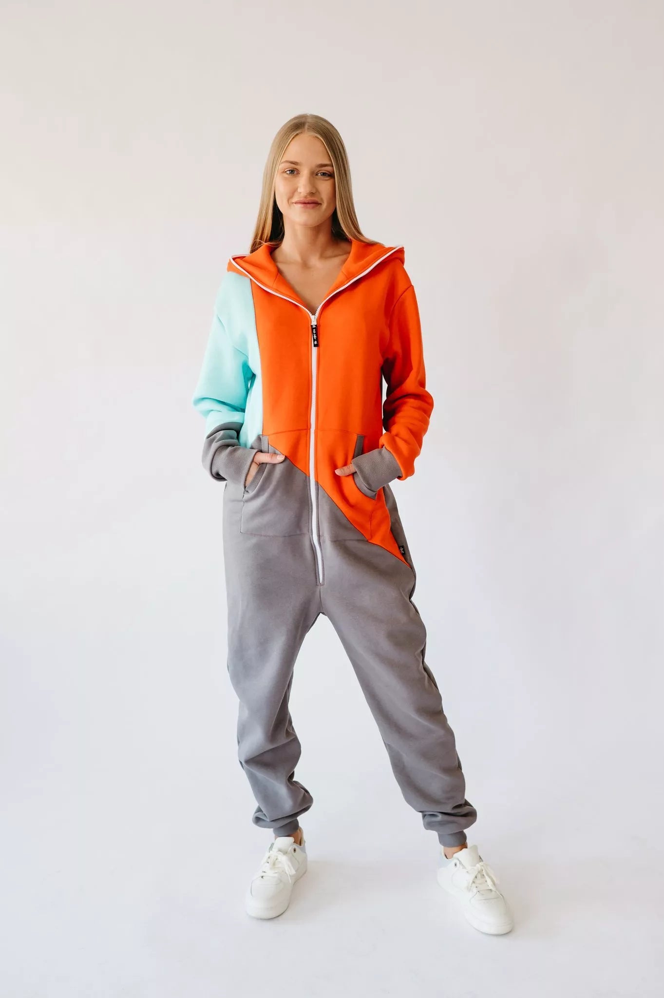 Ar esate pasiruošę smagiai praleisti laiką vilkėdami šį nuostabų mėtų, rudo akmens ir apelsinų spalvos laisvalaikio kombinezoną? Jis ne tik gražiai atrodo – galime garantuoti, kad jums patiks būti su šiuo itin patogiu kombinezonu. Jūsų odai patiks kvėpuoti, nes kombinezonas pasiūtas iš 92% medvilnės ir 8% elastano bei poliesterio. Vilkint jį jausmas lyg dėvint antroją odą – galite jame atsipalaiduoti arba bėgioti kaip mažas laimingas vaikas. Su juo galėsite veikti absolučiai bet ką, kas džiugina jūsų širdį. Ei, jūreivi!