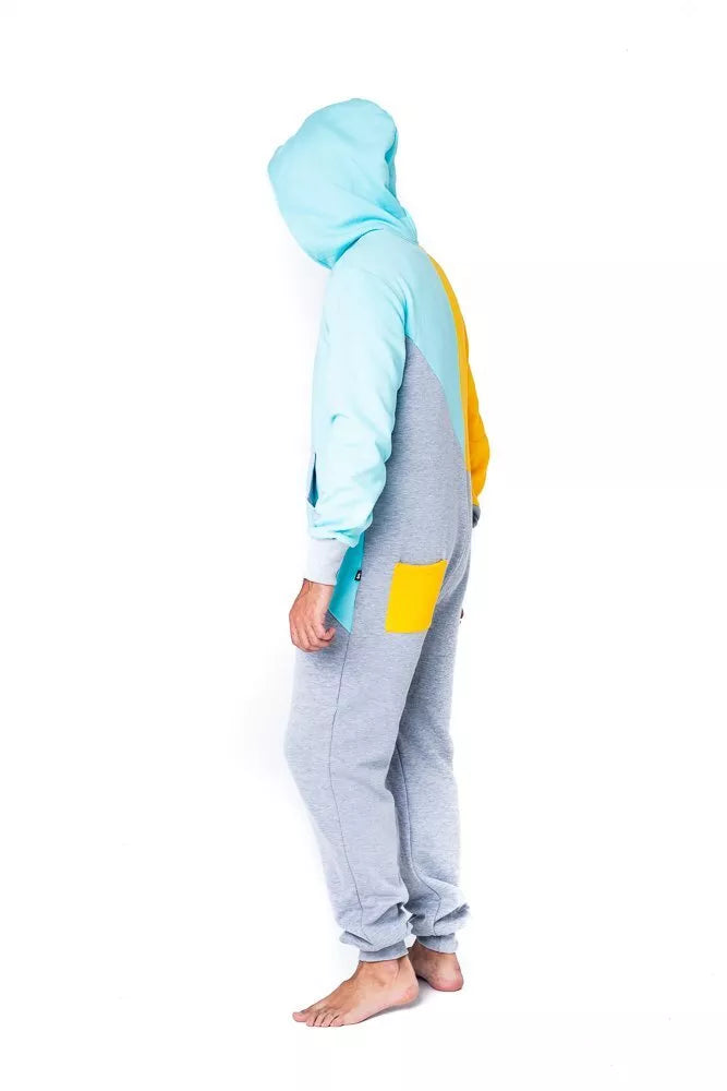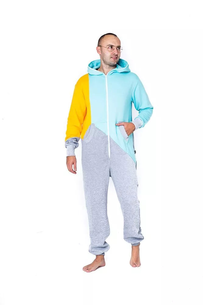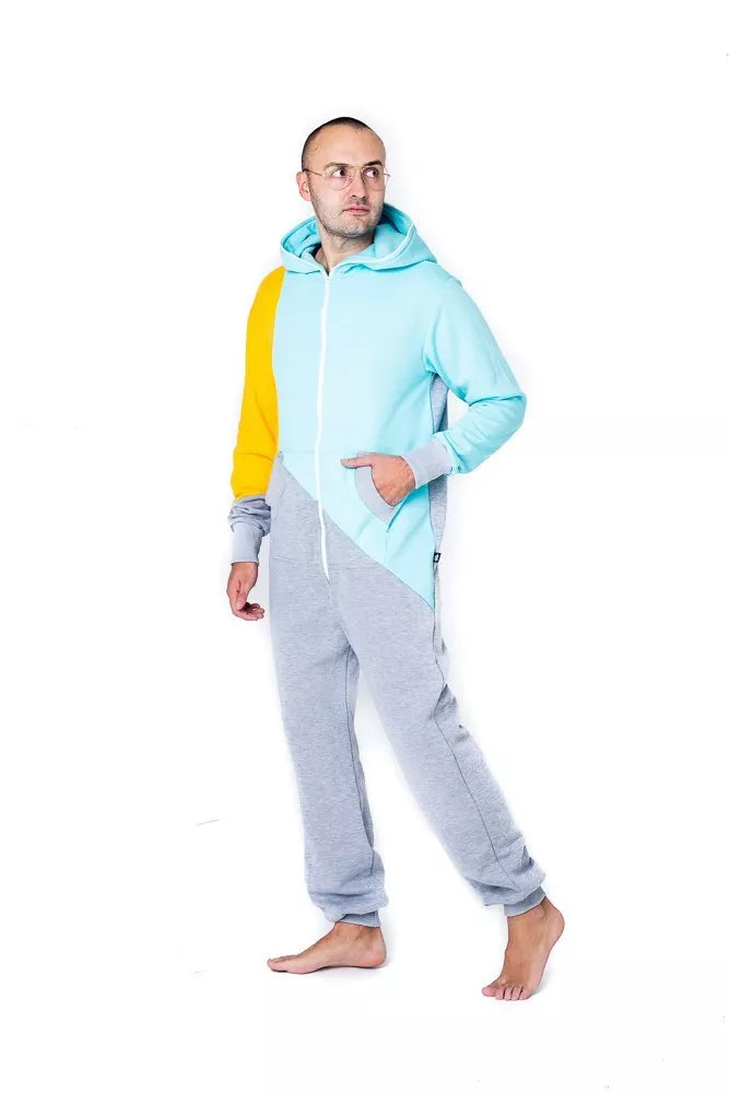 Šiltas trispalvis kombinezonas MINT su turkio spalvos rankove, skirtas tiek vyrams tiek moterims. Kišenės priekyje ir viena nugaroje. Medžiagos vidinė dalis su tankiu pūkeliu, kuris sukuria įpatingą šilumos jausmą ir norą vilkėti kombinezoną nuolat. Sofa Killer kombinezonų modeliai nevaržo judesių, tad puikiai tinka tiek pasyviam tiek aktyviam poilsiui, net miegui. Galite rinktis iš plačios dydžių skalės, o pats rūbas tradiciškai turi būti laisvas, tad kiek didesnis dydis puikiai tiks. Dekoruota Sofa Killer logotipu po kišene priekyje.
