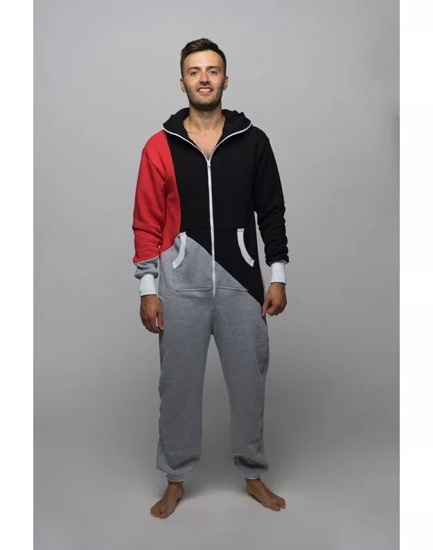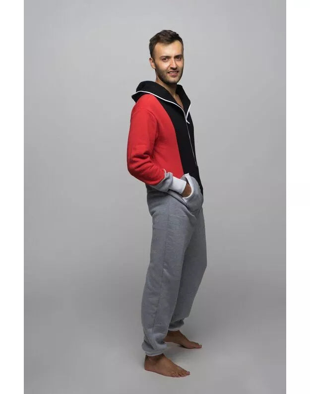 Šiltas trispalvis kombinezonas Racing su baltais rankogaliais, skirtas tiek vyrams tiek moterims. Kišenės priekyje ir viena nugaroje. Medžiagos vidinė dalis su tankiu pūkeliu, kuris sukuria įpatingą šilumos jausmą ir norą vilkėti kombinezoną nuolat. Sofa Killer kombinezonų modeliai nevaržo judesių, tad puikiai tinka tiek pasyviam tiek aktyviam poilsiui, net miegui. Galite rinktis iš plačios dydžių skalės, o pats rūbas tradiciškai turi būti laisvas, tad kiek didesnis dydis puikiai tiks. Dekoruota Sofa Killer logotipu po kišene priekyje.