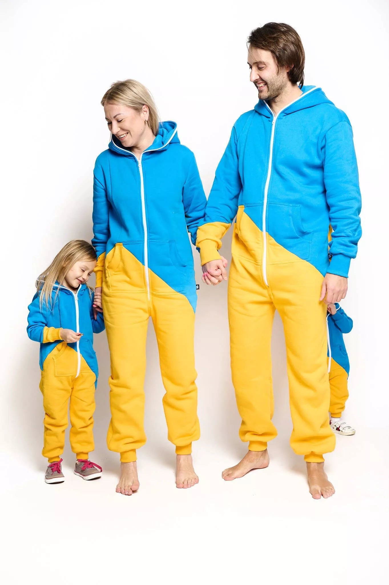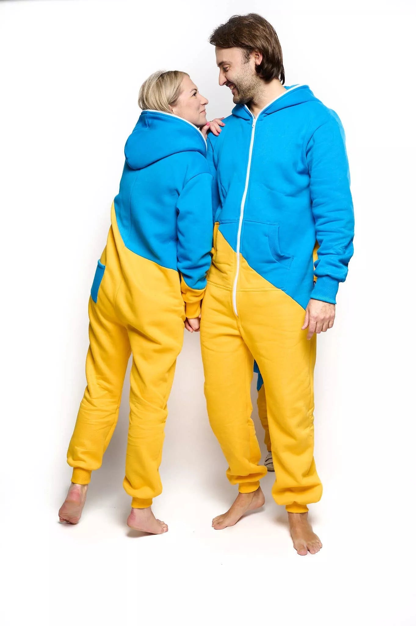 Šiltas trispalvis kombinezonas su Ukrainos vėliavos spalvomis, skirtas tiek vyrams tiek moterims. Kišenės priekyje ir viena nugaroje. Medžiagos vidinė dalis su tankiu pūkeliu, kuris sukuria įpatingą šilumos jausmą ir norą vilkėti kombinezoną nuolat. Sofa Killer kombinezonų modeliai nevaržo judesių, tad puikiai tinka tiek pasyviam tiek aktyviam poilsiui, net miegui. Galite rinktis iš plačios dydžių skalės, o pats rūbas tradiciškai turi būti laisvas, tad kiek didesnis dydis puikiai tiks. Dekoruota Sofa Killer logotipu po kišene priekyje. Remiame Ukrainos žmones nukentėjusius kare ir pagal situaciją skiriame įvairialypę paramą.