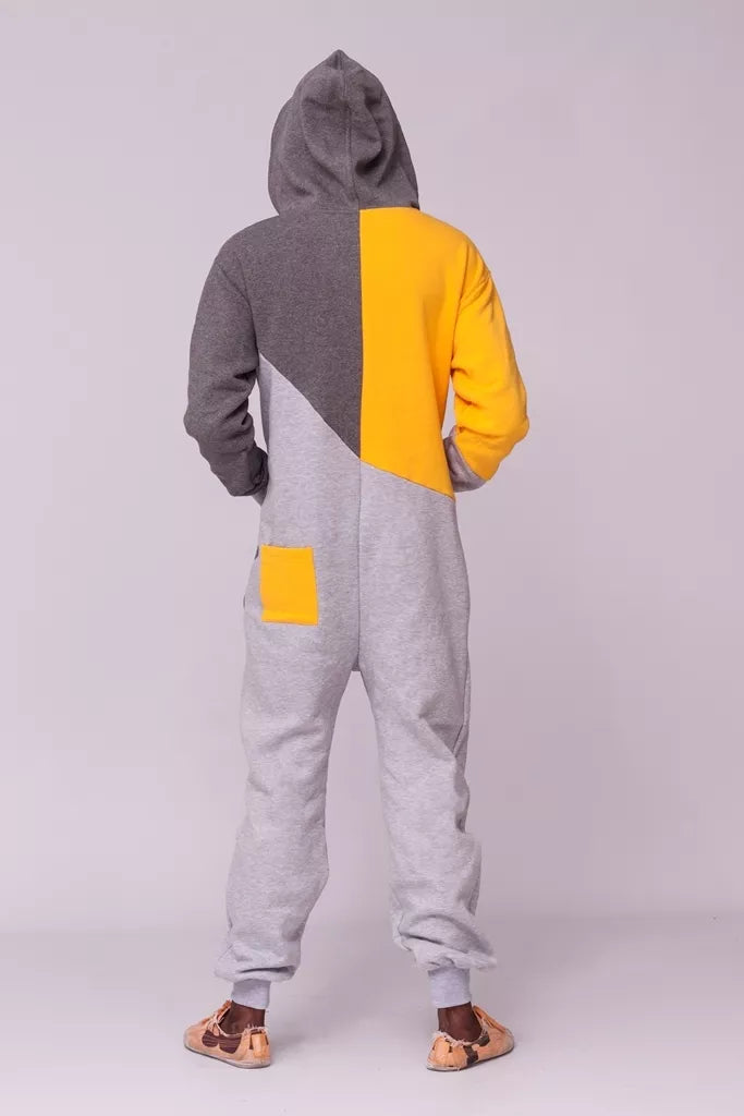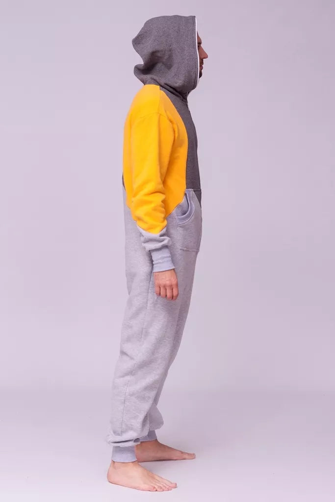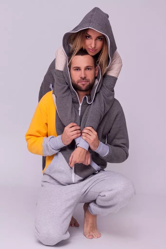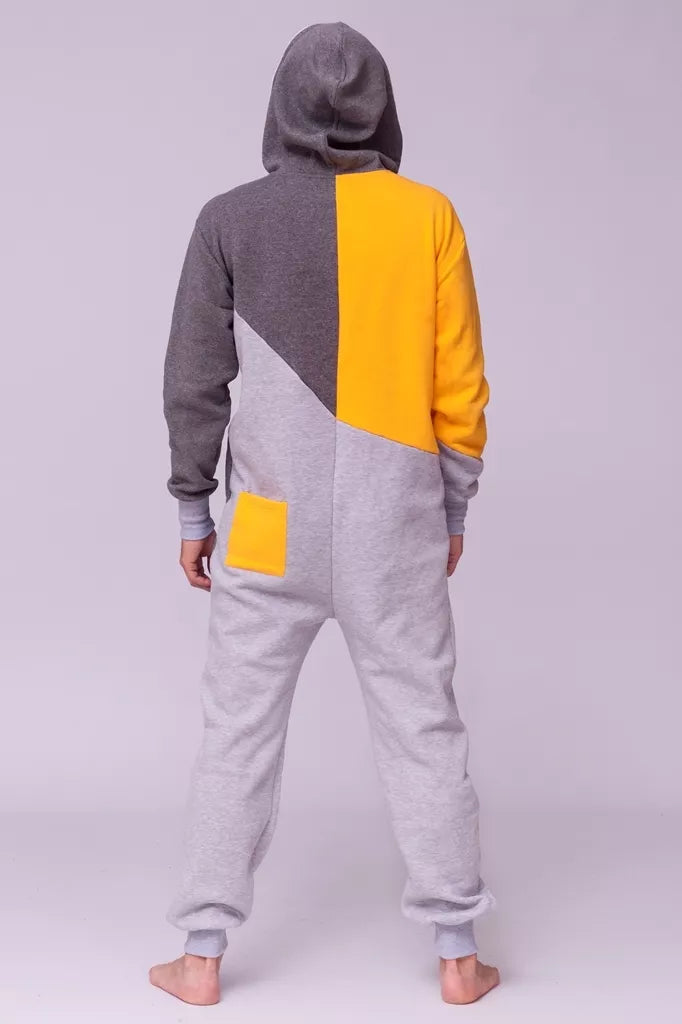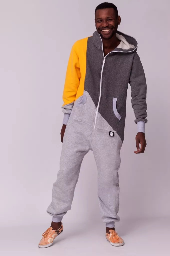 Šiltas trispalvis kombinezonas SUNNY, skirtas tiek vyrams tiek moterims. Kišenės priekyje ir viena nugaroje. Medžiagos vidinė dalis su tankiu pūkeliu, kuris sukuria įpatingą šilumos jausmą ir norą vilkėti kombinezoną nuolat. Sofa Killer kombinezonų modeliai nevaržo judesių, tad puikiai tinka tiek pasyviam tiek aktyviam poilsiui, net miegui. Galite rinktis iš plačios dydžių skalės, o pats rūbas tradiciškai turi būti laisvas, tad kiek didesnis dydis puikiai tiks. Dekoruota Sofa Killer logotipu po kišene priekyje.