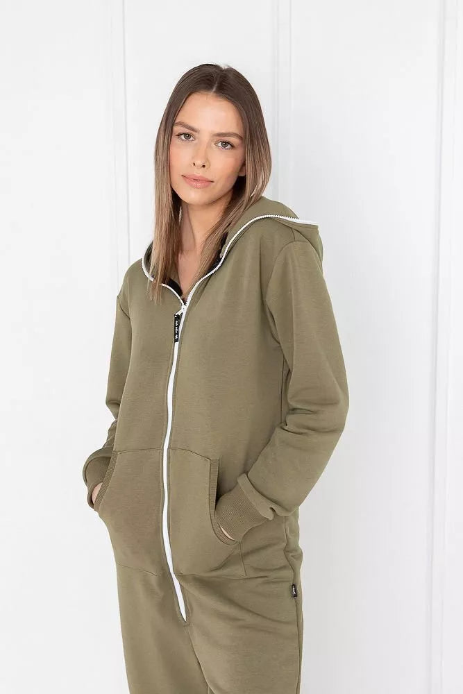 Sofa Killer žalias kombinezonas Olive, skirtas tiek vyrams tiek moterims. Kišenės priekyje. Kombinezono audinys sukuria šilumos jausmą ir norą vilkėti kombinezoną nuolat. Sofa Killer kombinezonų modeliai nevaržo judesių, tad puikiai tinka tiek pasyviam tiek aktyviam poilsiui, net miegui. Galite rinktis iš plačios dydžių skalės, o pats rūbas tradiciškai turi būti laisvas, tad kiek didesnis dydis puikiai tiks. Dekoruota Sofa Killer logotipu po kišene.