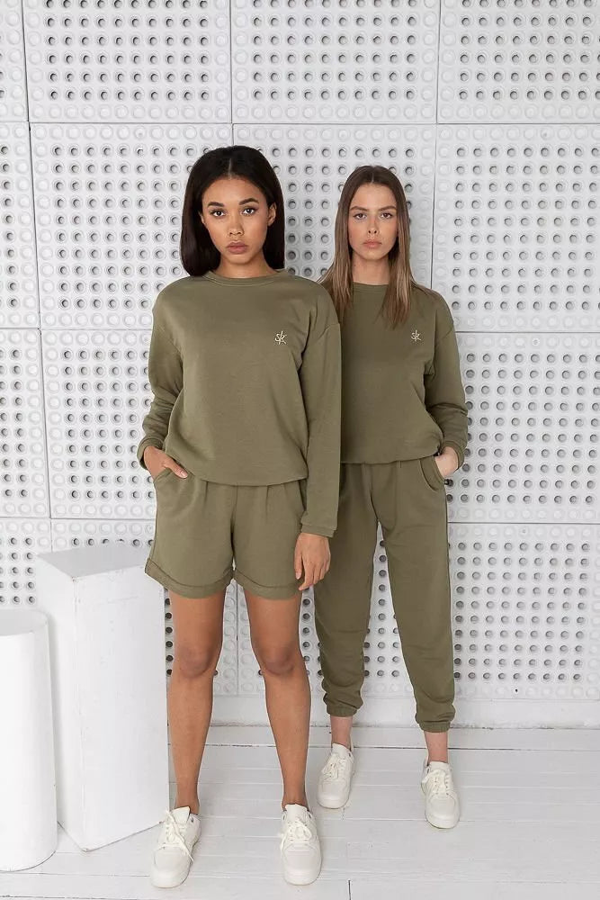 Sofa Killer žalias laisvalaikio kostiumas Olive su šortais su siuvinėtu Sofa Killer logotipu su šortais. Sofa Killer sportinių kostiumų modeliai nevaržo judesių, tad puikiai tinka tiek pasyviam tiek aktyviam poilsiui. Galite rinktis iš plačios dydžių skalės, o pats rūbas tradiciškai turi būti laisvas, tad kiek didesnis dydis puikiai tiks. Dekoruota Sofa Killer logotipu po kišene. Galite priderinti ir kelnes.